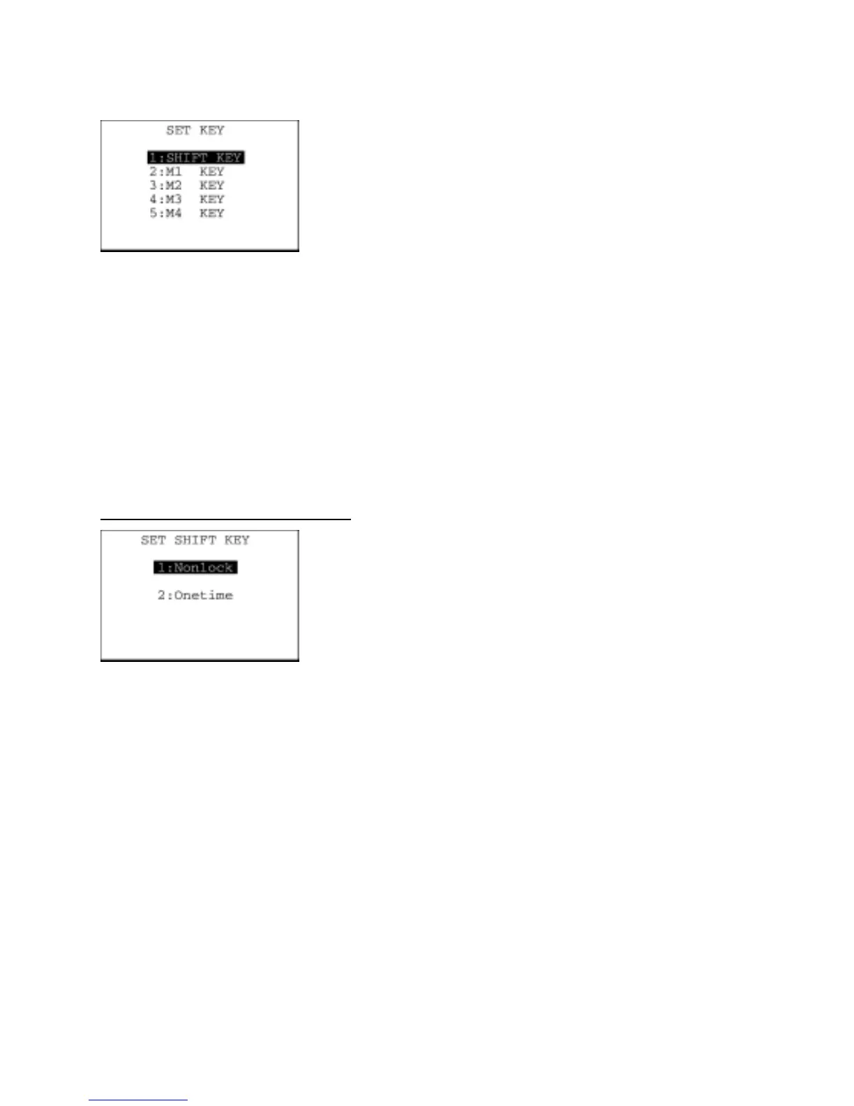 On the SET KEY menu, select "1: SHIFT KEY" to call up the screen