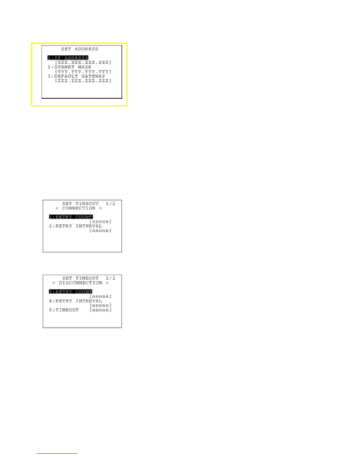 On the SET TCP/IP screen, select "3: TIMEOUT" to call up the screen
