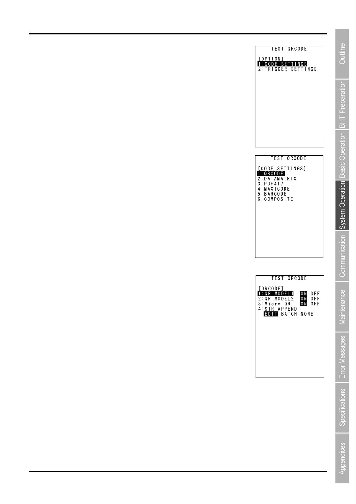 If you select “1: CODE SETTINGS”, the screen displays as shown on the