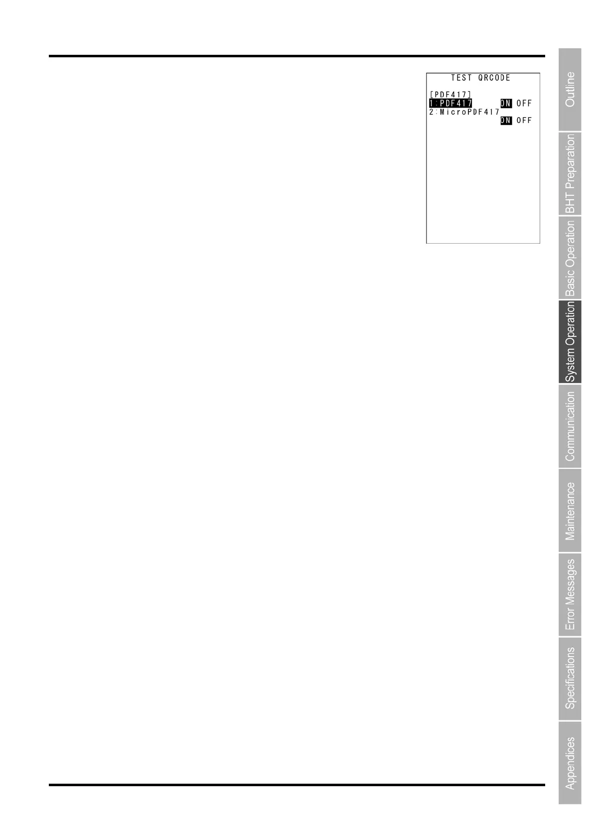 “3: PDF417”: Selecting enable/disable PDF417 reading