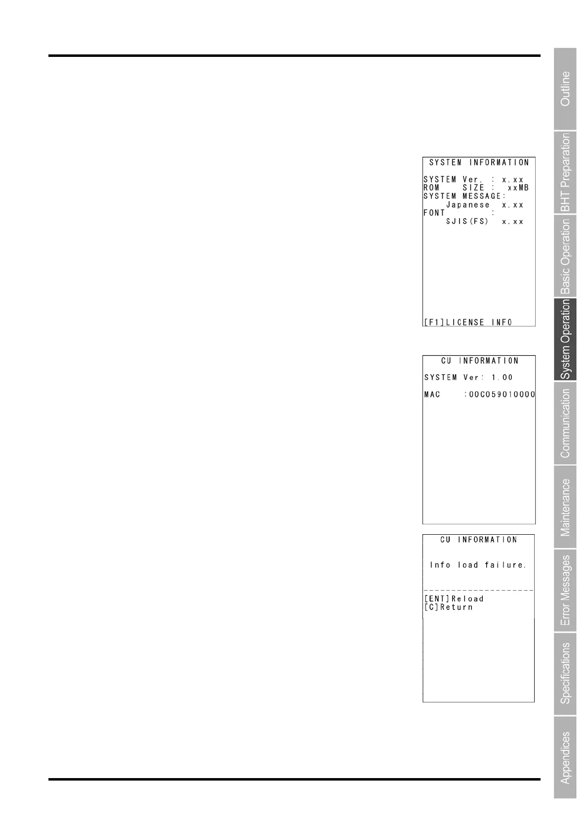 Press the C key to return to the SYSTEM INFORMATION screen.