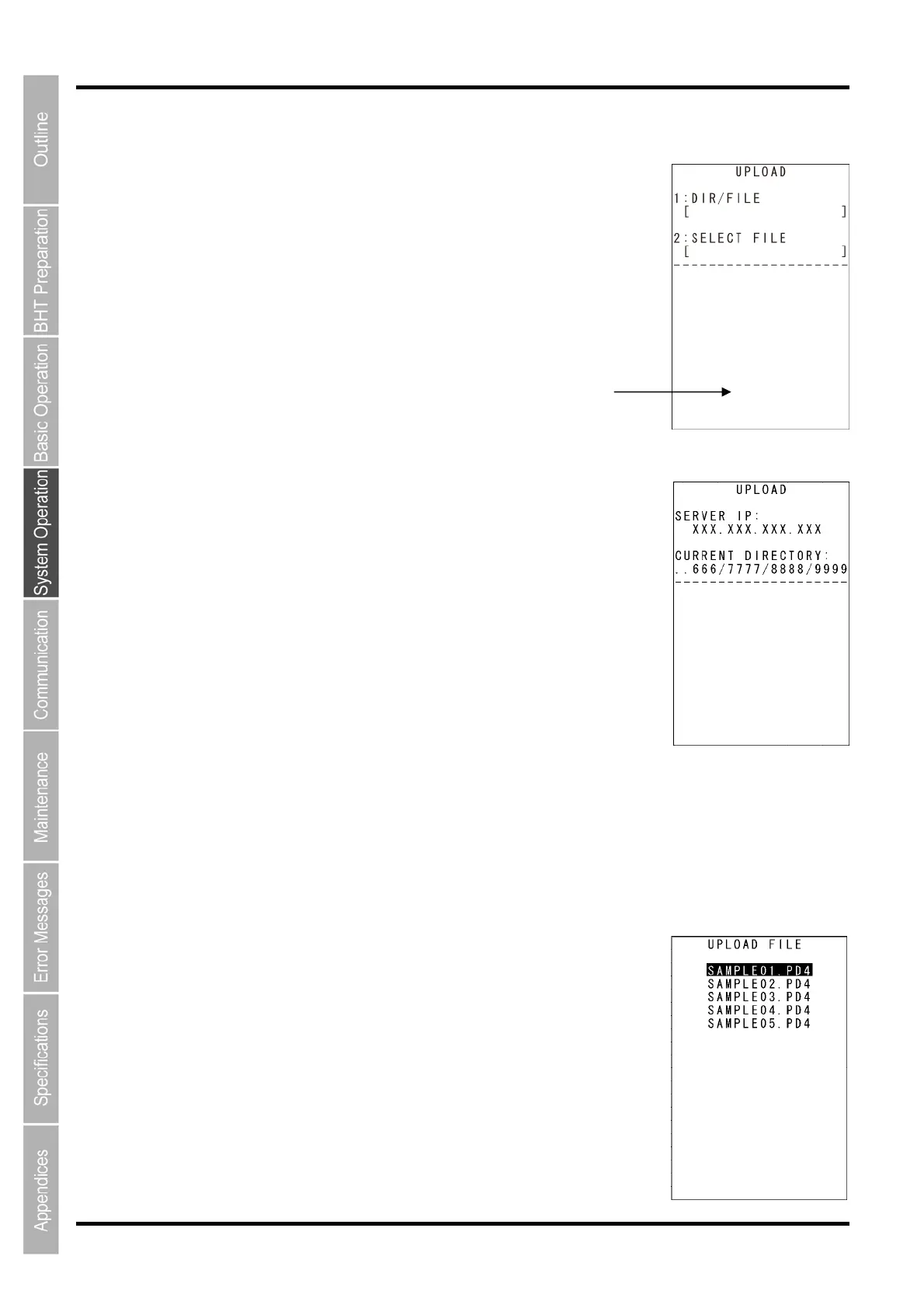 1. Select “2: UPLOAD” at the FTP MENU and then press the ENT key.