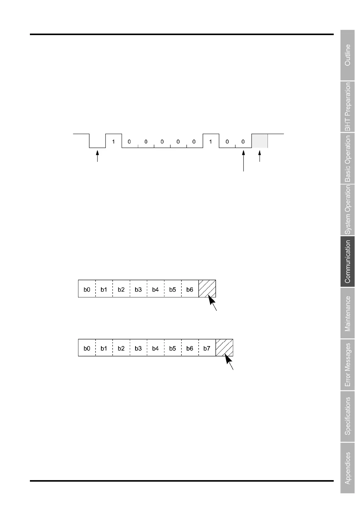 The example below is for the transmission of an ASCII 8-bit code A (41h or 01000001b, b: binary) with