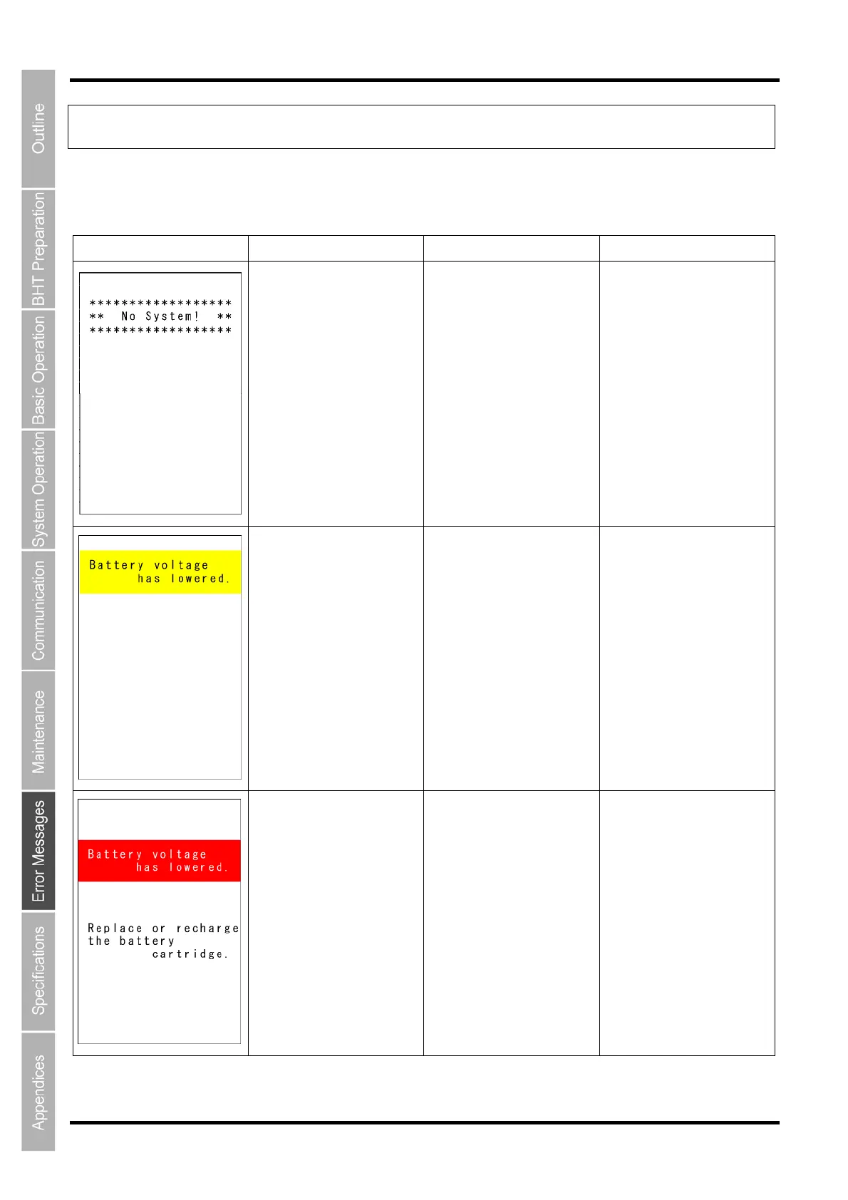Message BHT Response Cause Countermeasure
