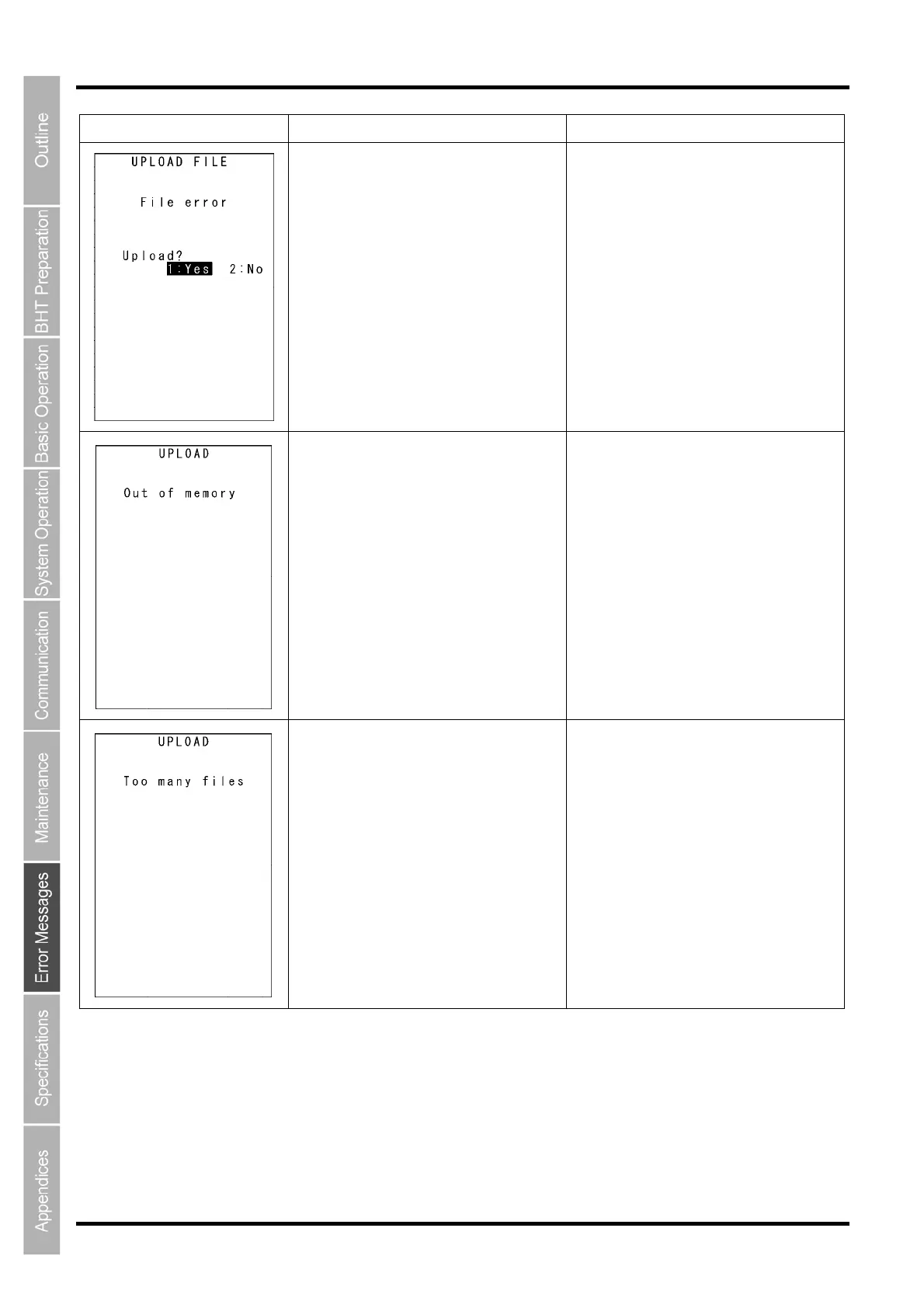 BHT system parameter file or system message
