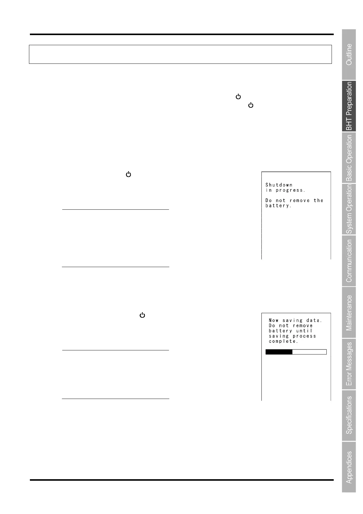 Auto power OFF → The power turns OFF itself when the BHT is not used for