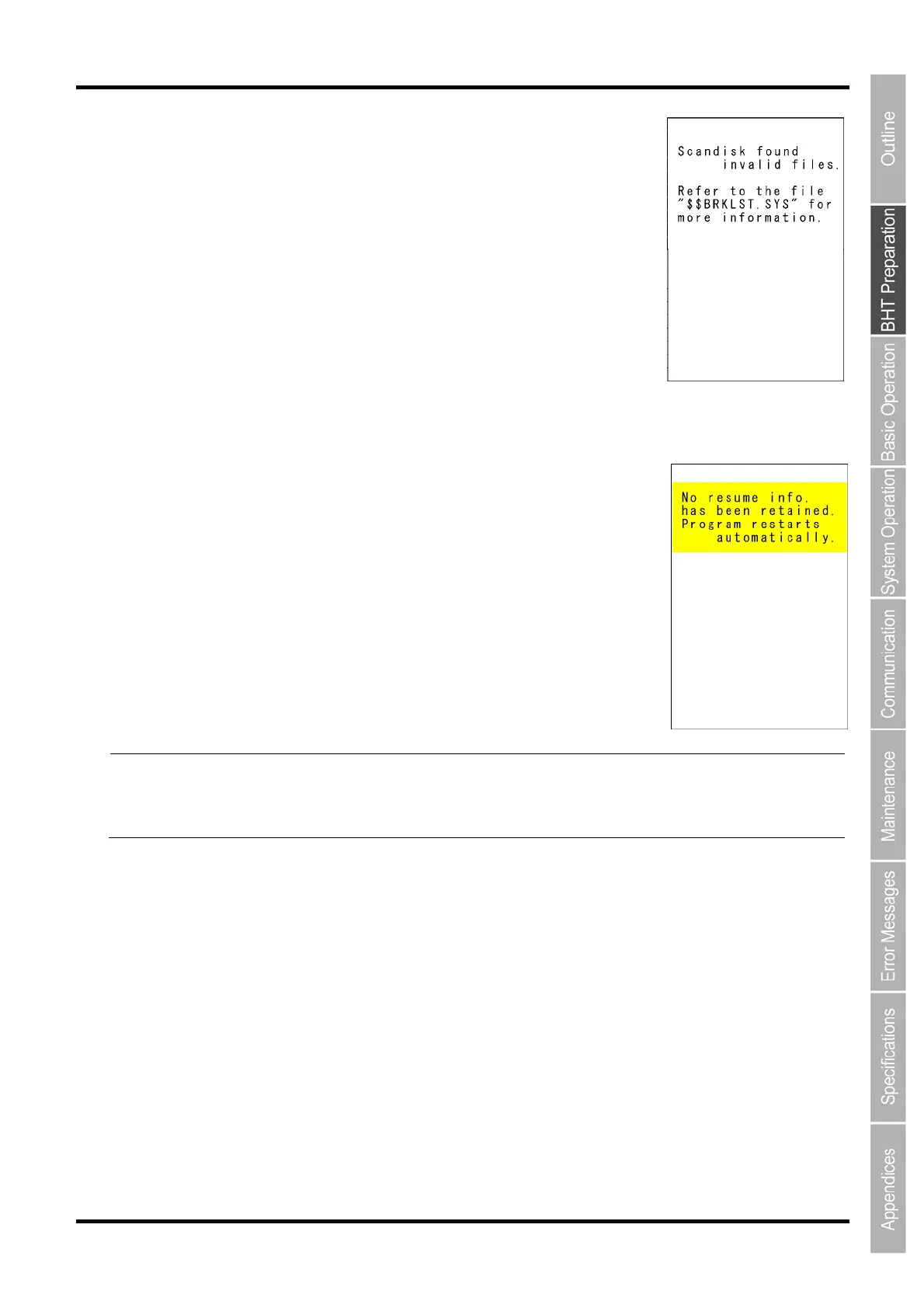 (As long as an invalid file exits, the screen displays every time the BHT