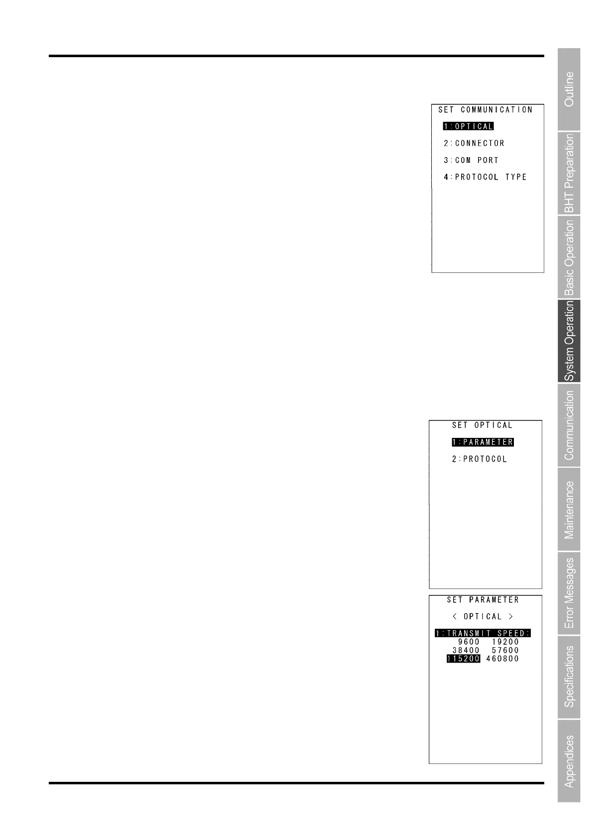 “1: TRANSMIT SPEED”: Setting the transmission speed