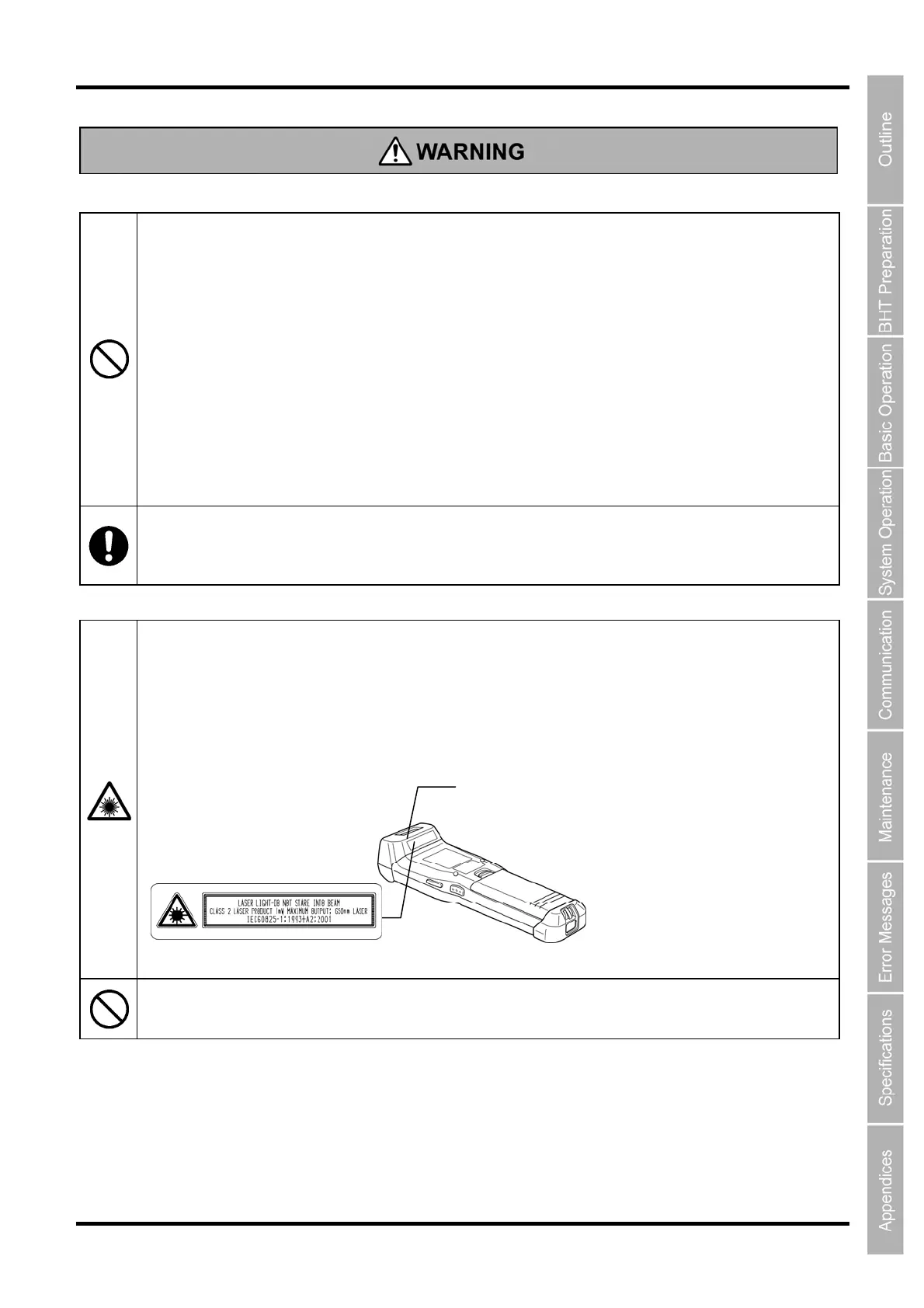 You must observe the following precautions when handling the BHT equipped with laser light: