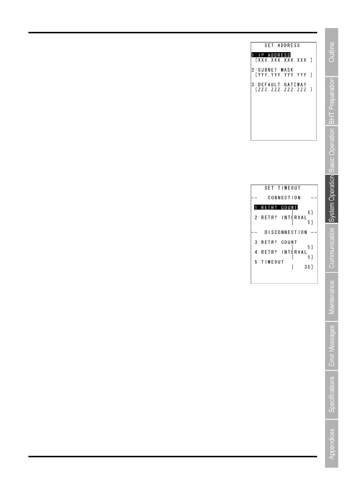 Select “2: IP ADDRESS” at the SET TCP/IP menu to display the screen on