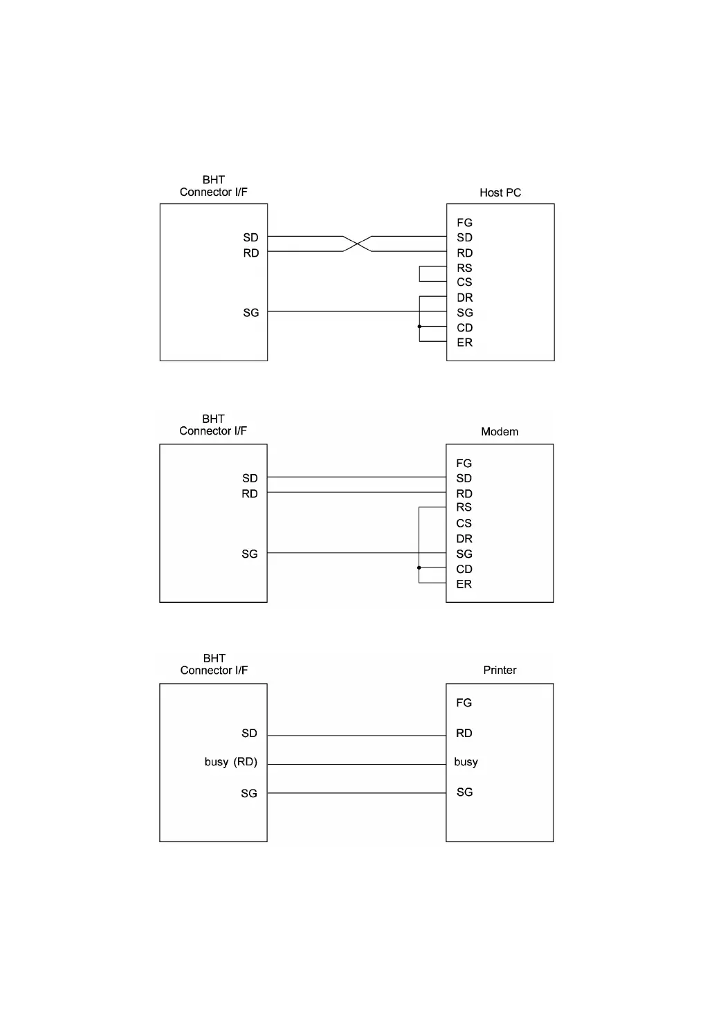 Connect the BHT directly to a host PC, a modem, or a printer with a direct-connect interface cable as
