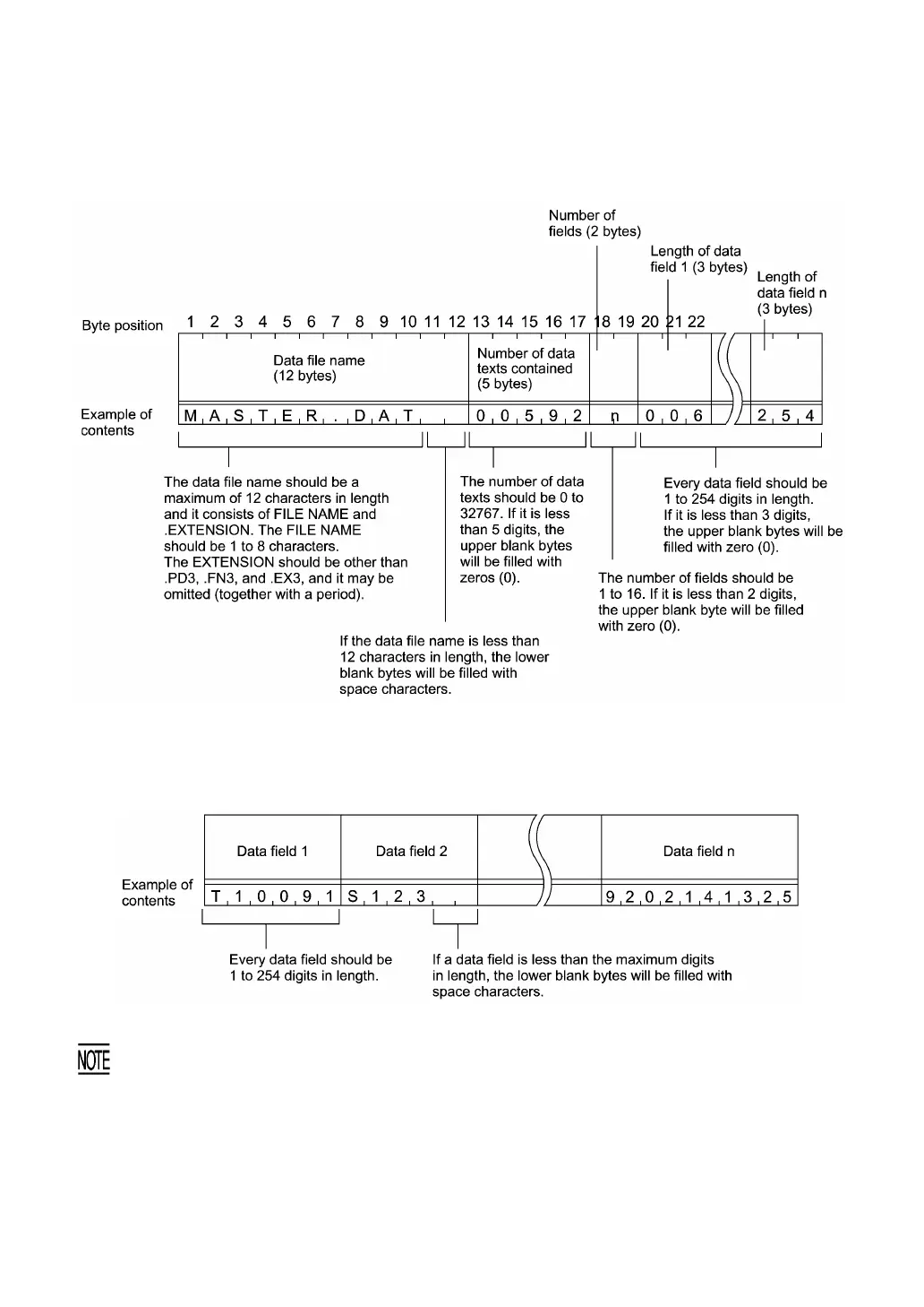 When you transfer five 50-digit (50-byte) fields, for example, the total length of all data fields is 250