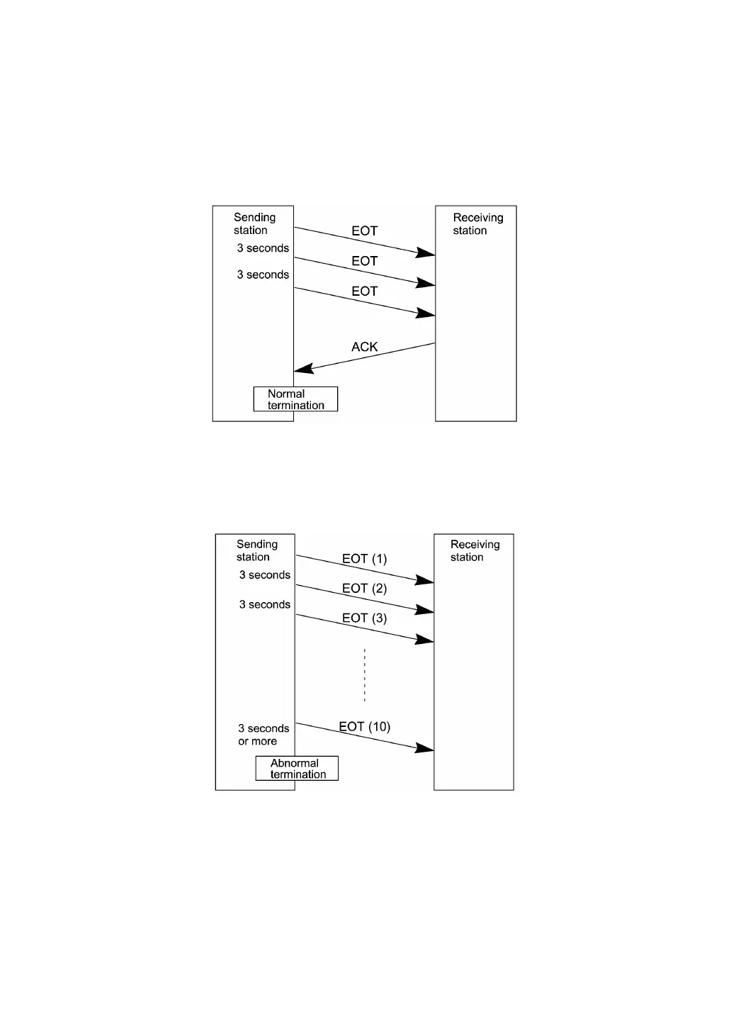 If the sending station receives no ACK from the receiving station within three seconds from the 10th EOT,