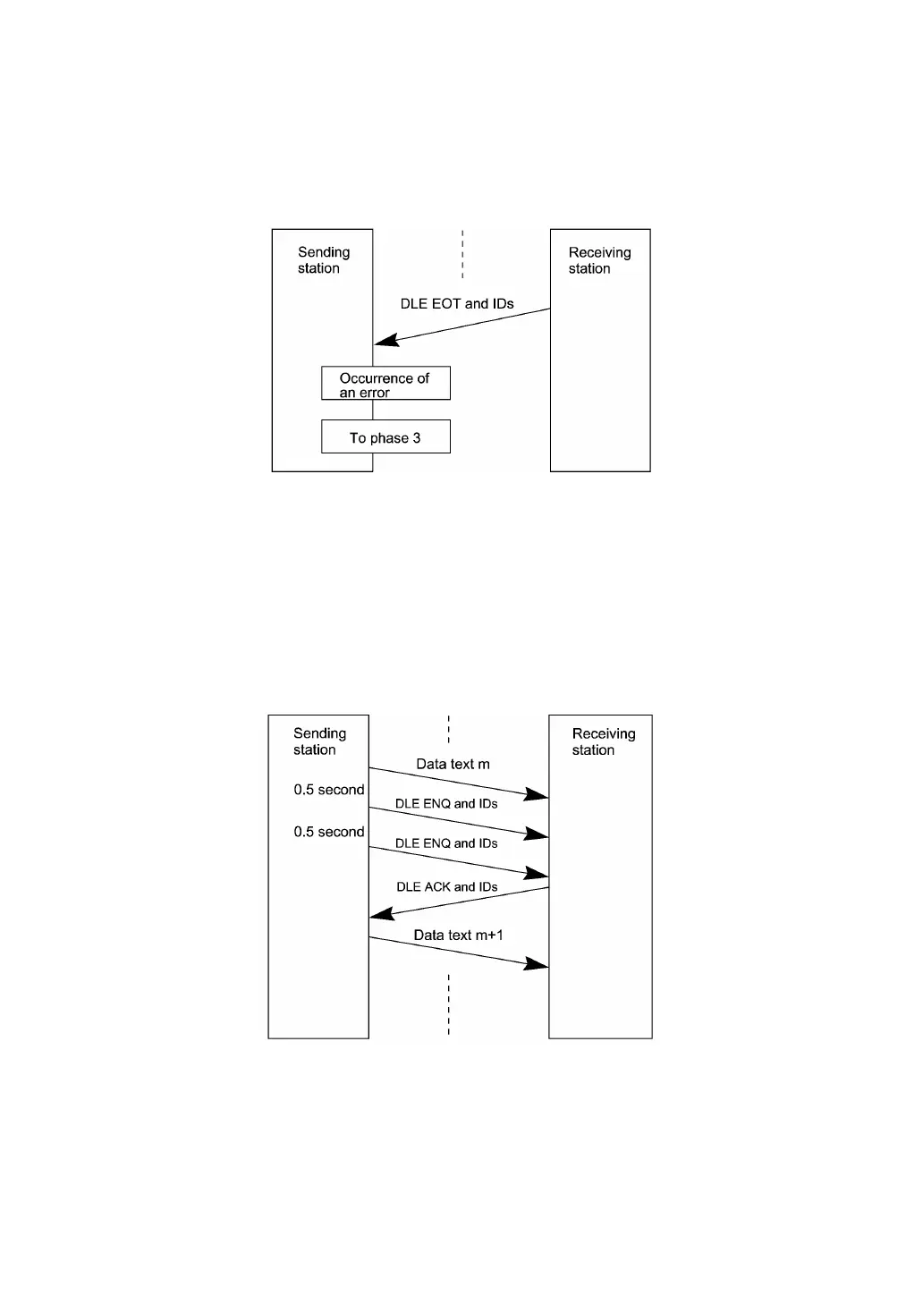! Phase 2 with iterated transmission of DLE ENQ and IDs due to no response or invalid
