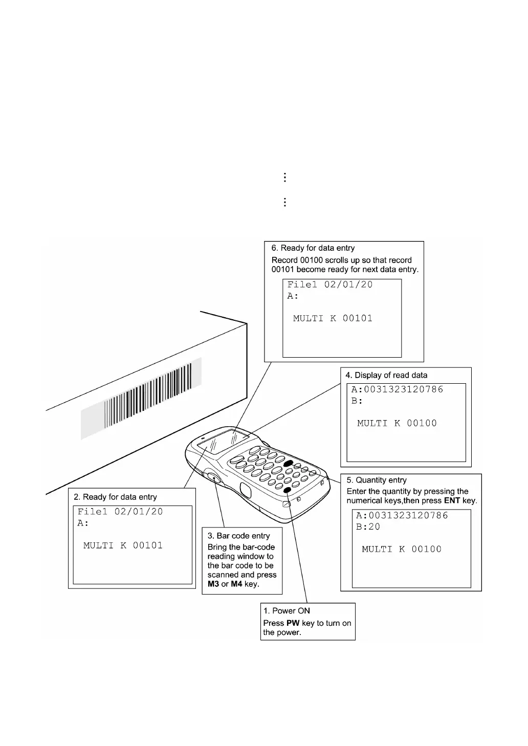 What follows is a typical basic operation which helps you instruct the hands-on user in practical bar-code