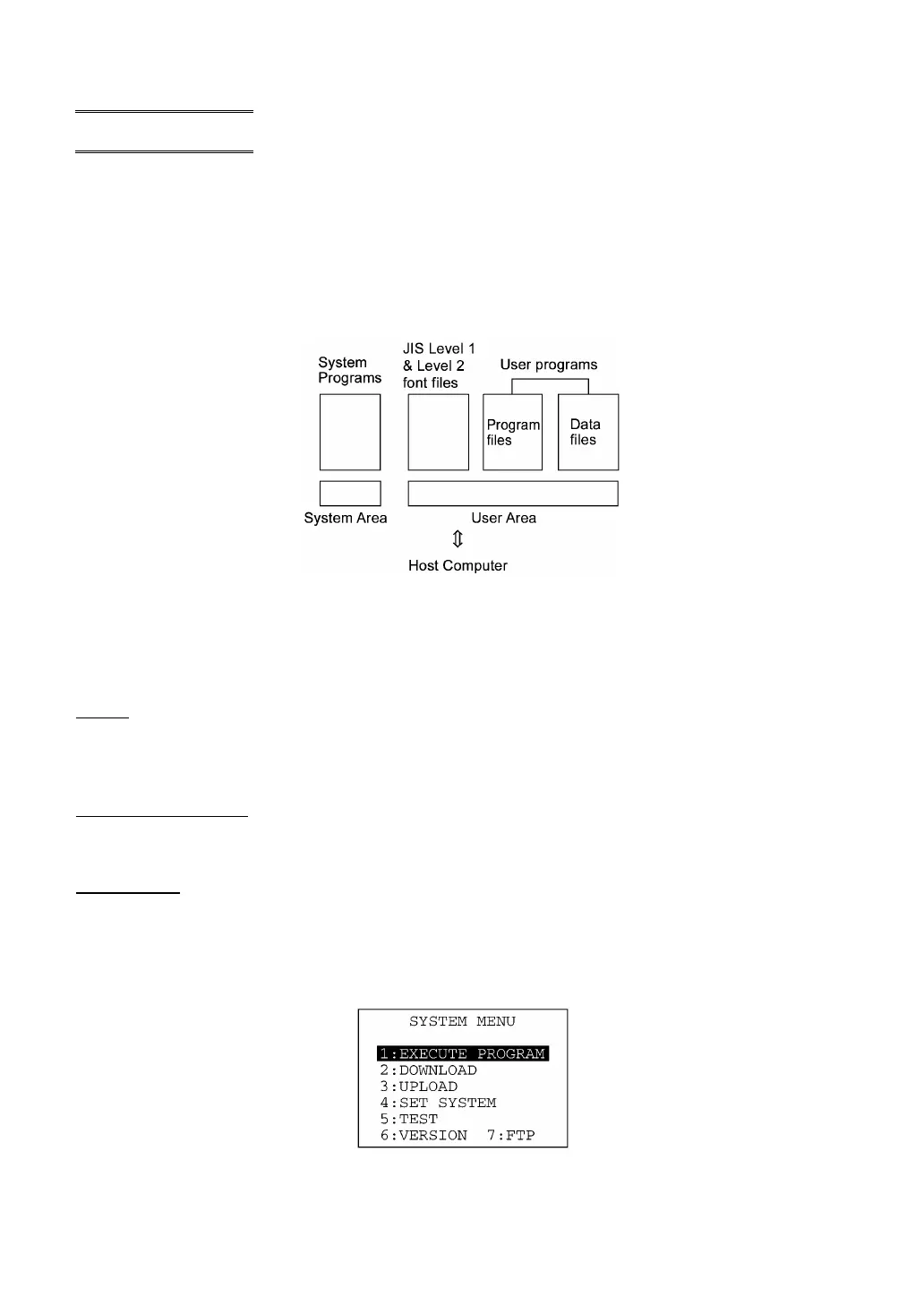 System Programs and JIS Level 1 & Level 2 fonts are resident in the system area and user area,