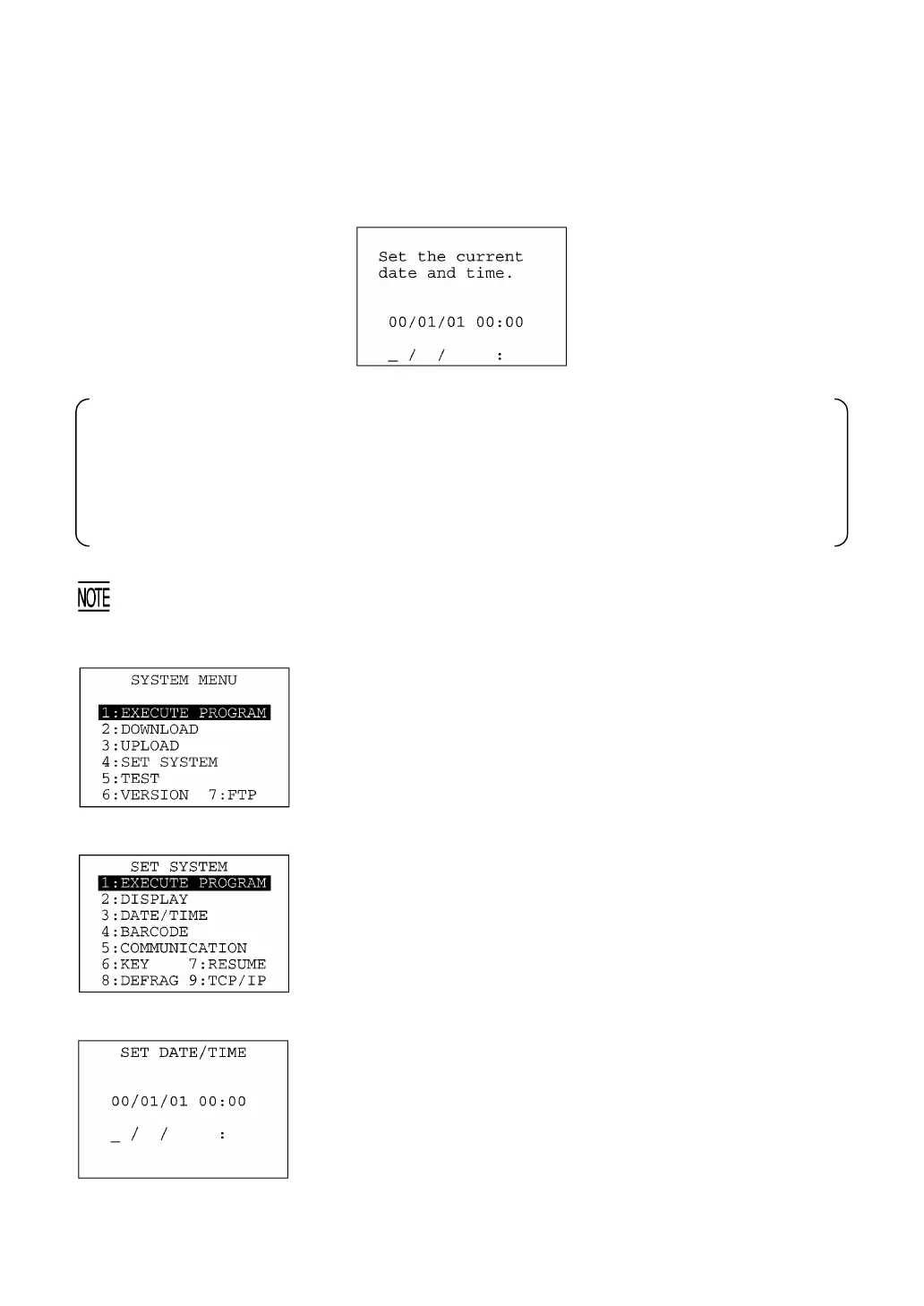 date and time. (The indication "00/01/01 00:00" will differ depending upon the calendar clock