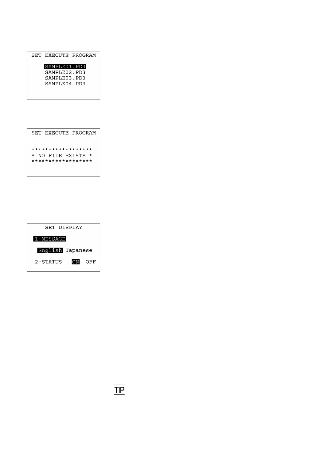 Selecting "1: EXECUTE PROGRAM" on the SET SYSTEM menu