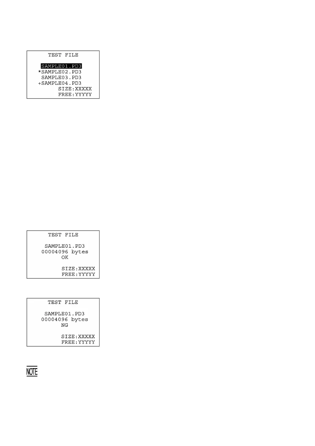 Selecting "6:FILE" on the TEST menu calls up the screen shown at