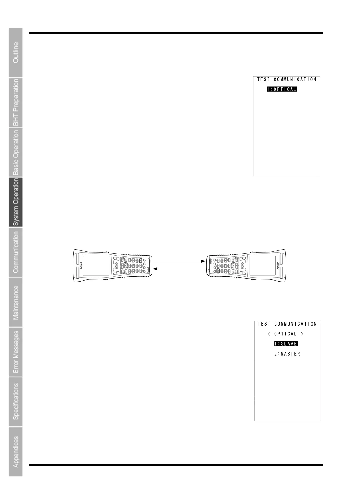 2. Select “1: OPTICAL” at the TEST COMMUNICATION menu and