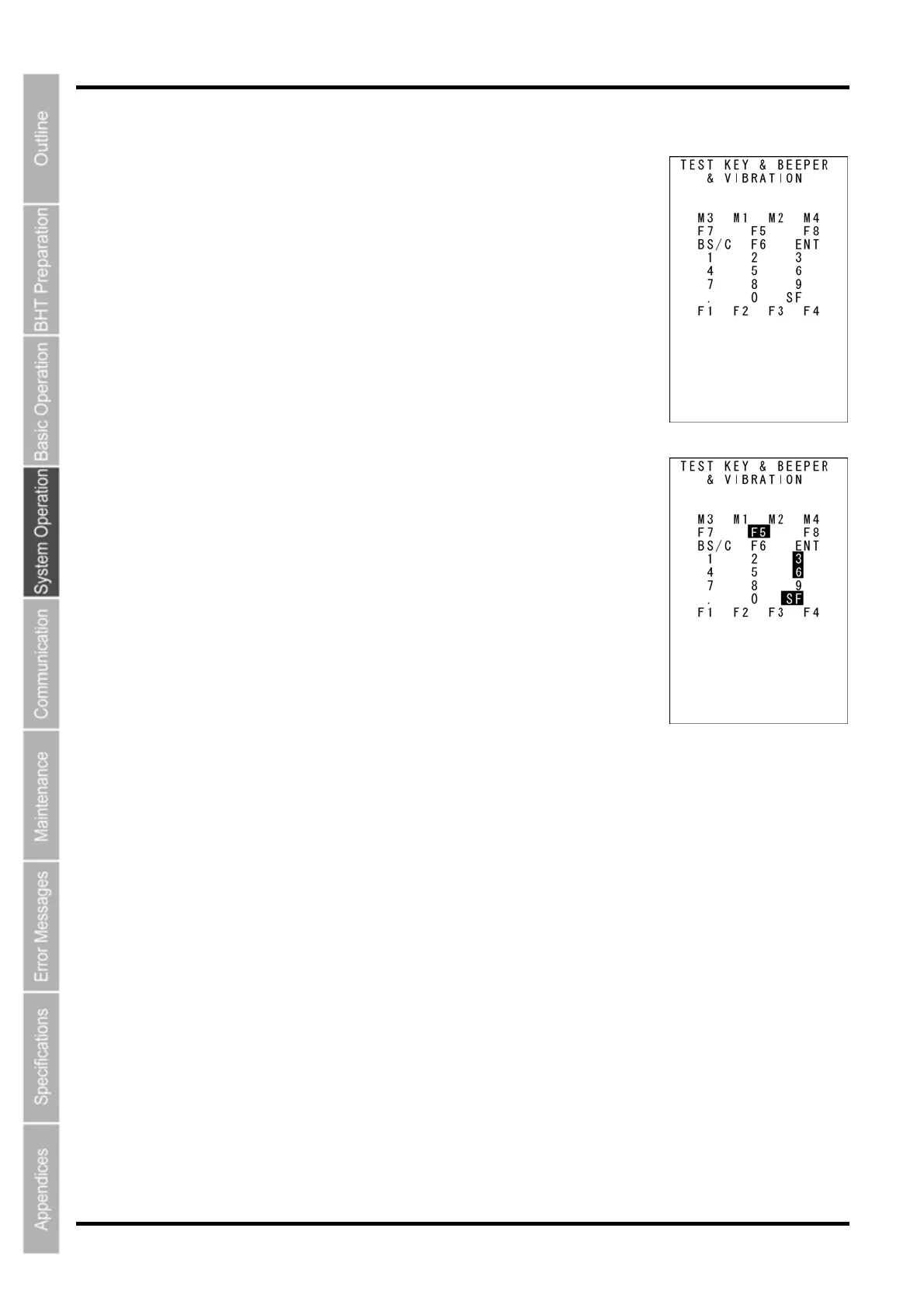1. Select “8: KEY & VIBRATION” at the TEST menu and then press
