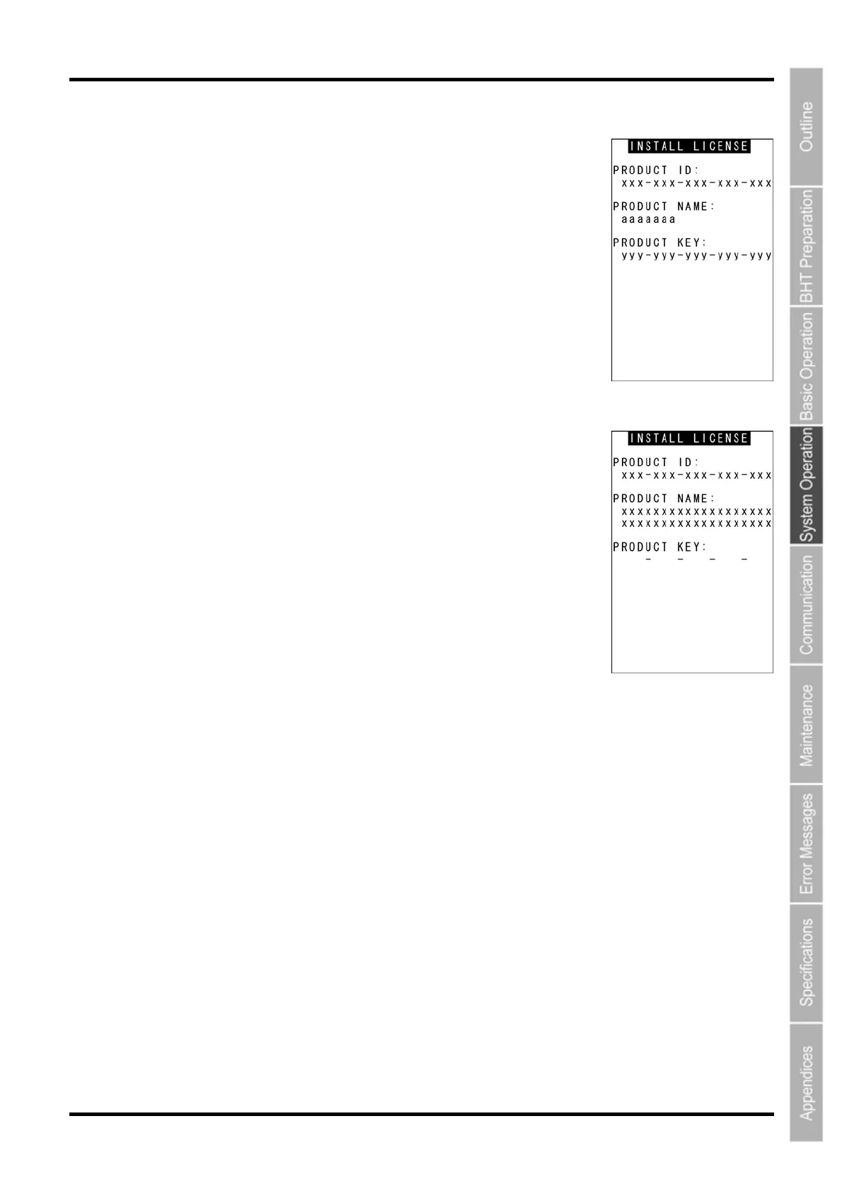 3. Press the BS/C key to return to the LICENSE INFORMATION screen.