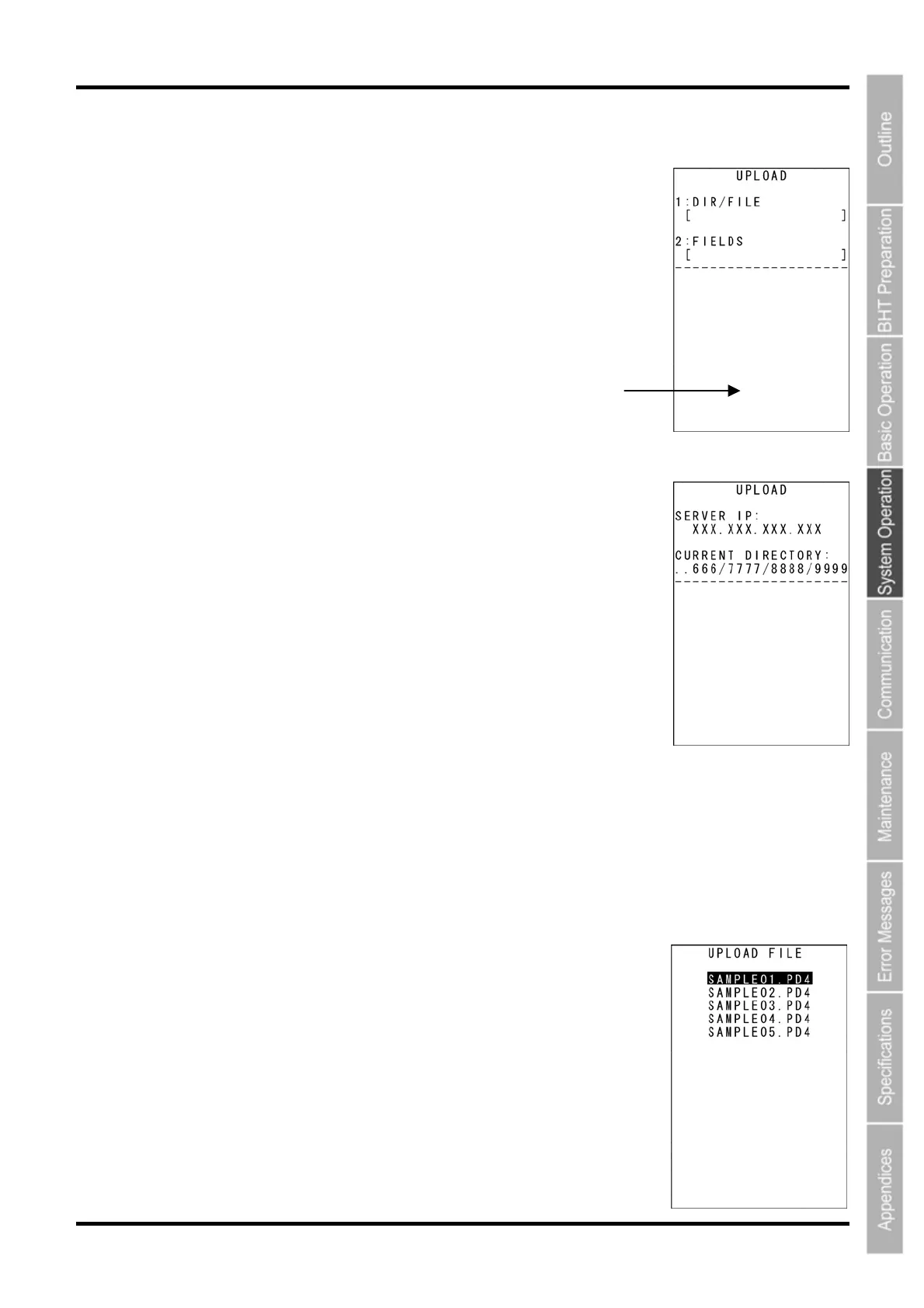 1. Select “2: UPLOAD” at the FTP MENU and then press the ENT key.