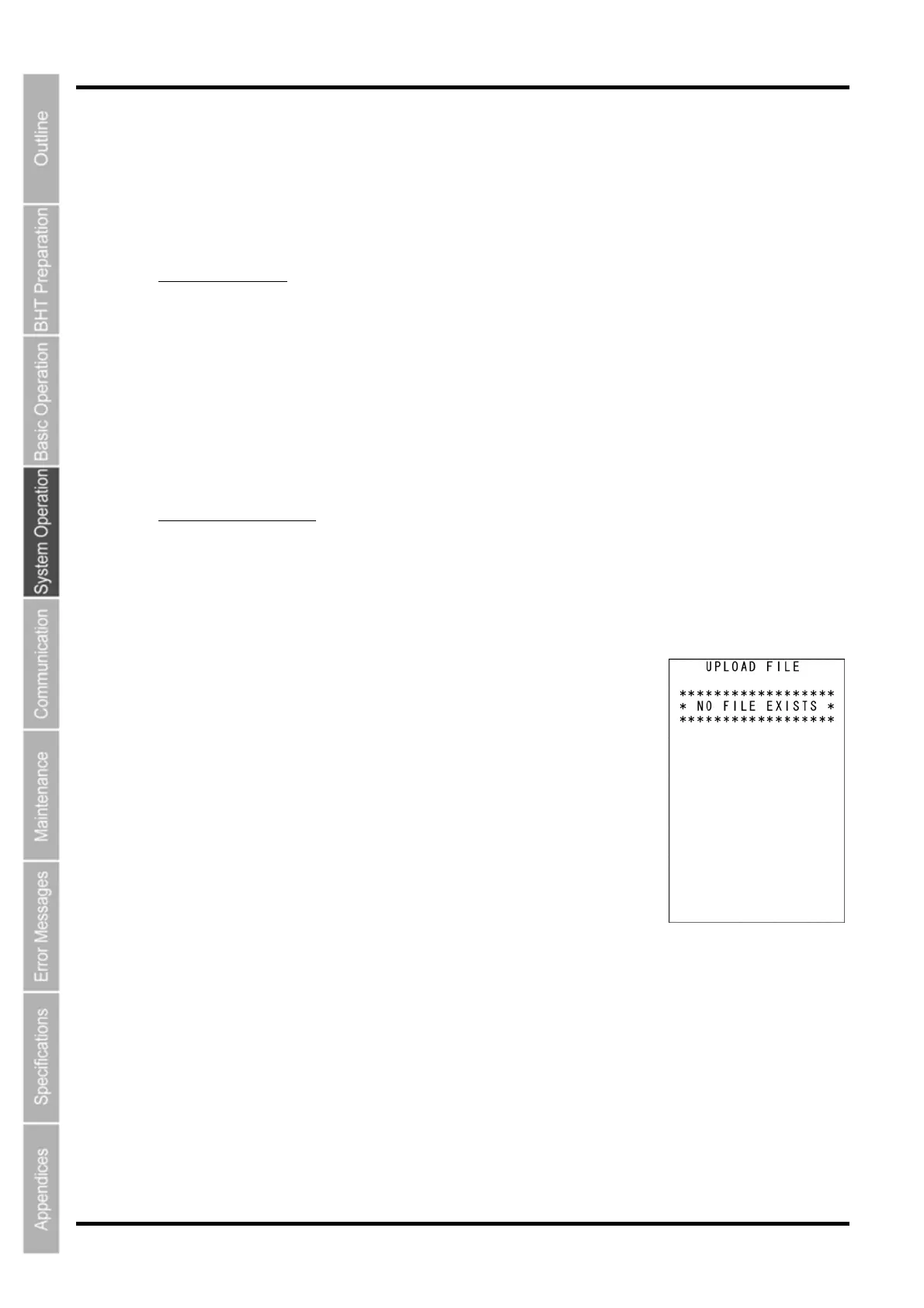 If no file exists in the BHT when uploading by FTP is selected, the message