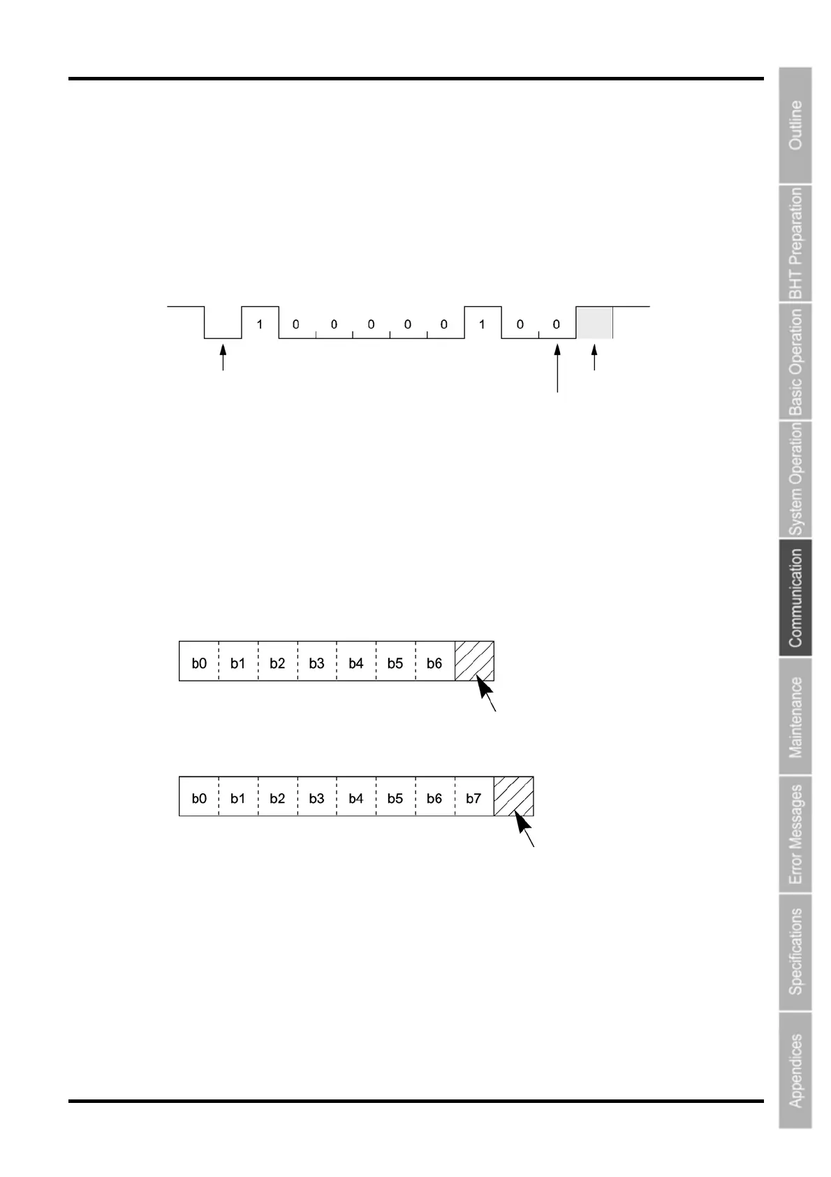 The example below is for the transmission of an ASCII 8-bit code A (41h or 01000001b, b: binary) with