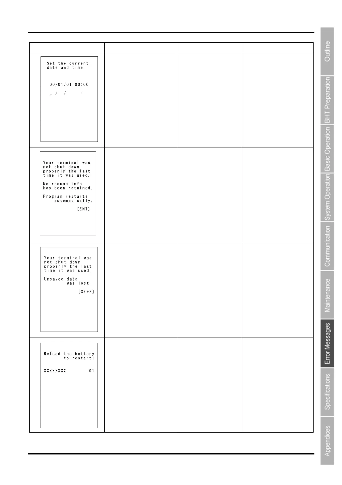 Message BHT Response Cause Solution