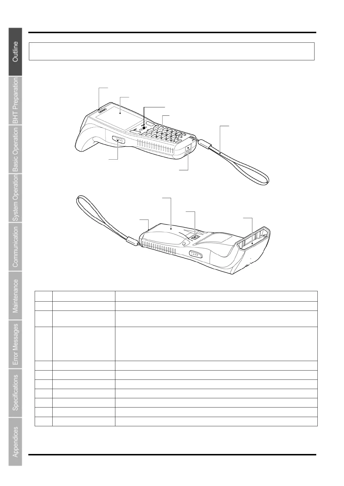 (7) Hand strap Wear this strap around your wrist to prevent you from dropping the BHT accidentally.