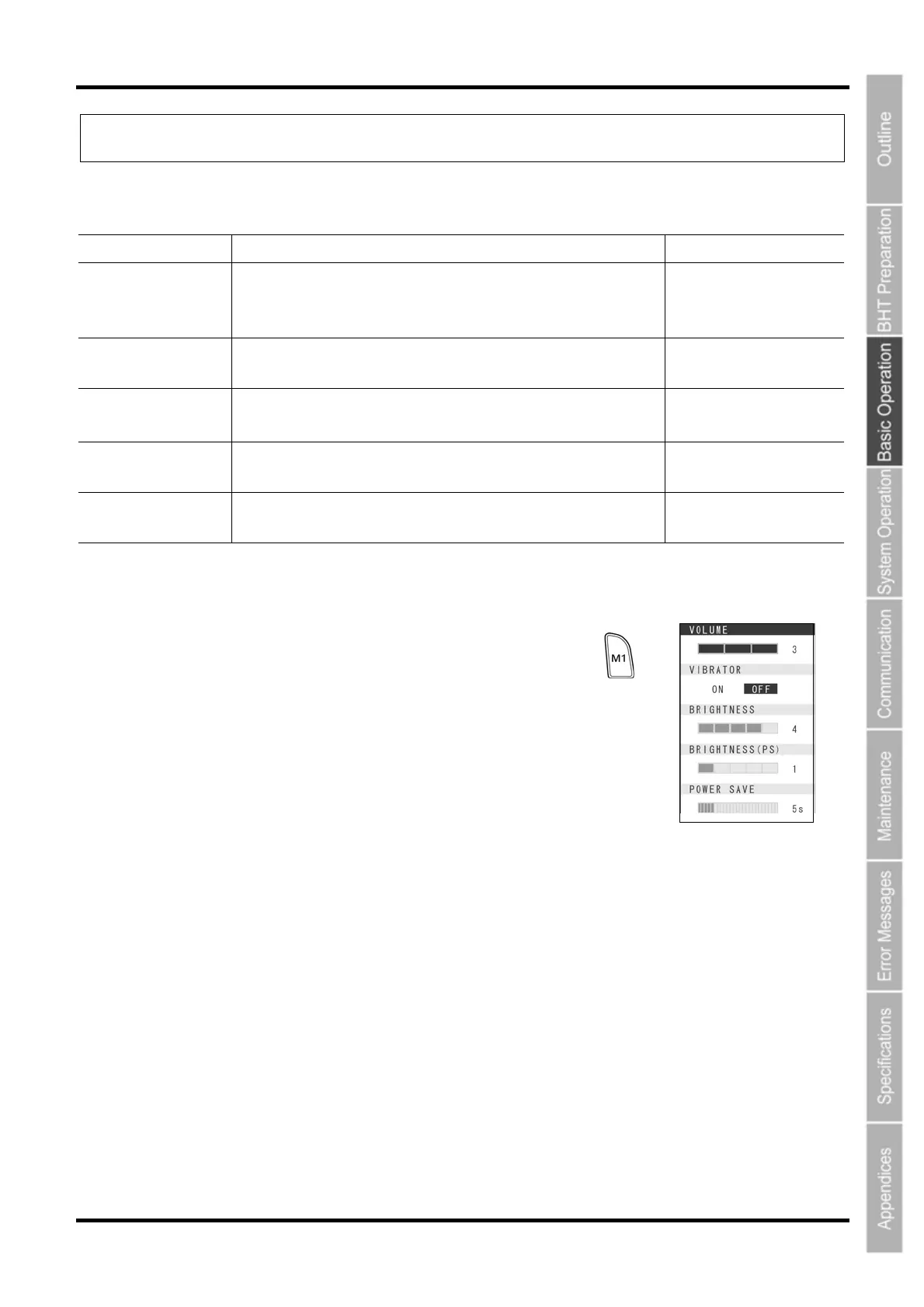The volume, vibrator, LCD display brightness and power save settings can be changed at the MENU screen.