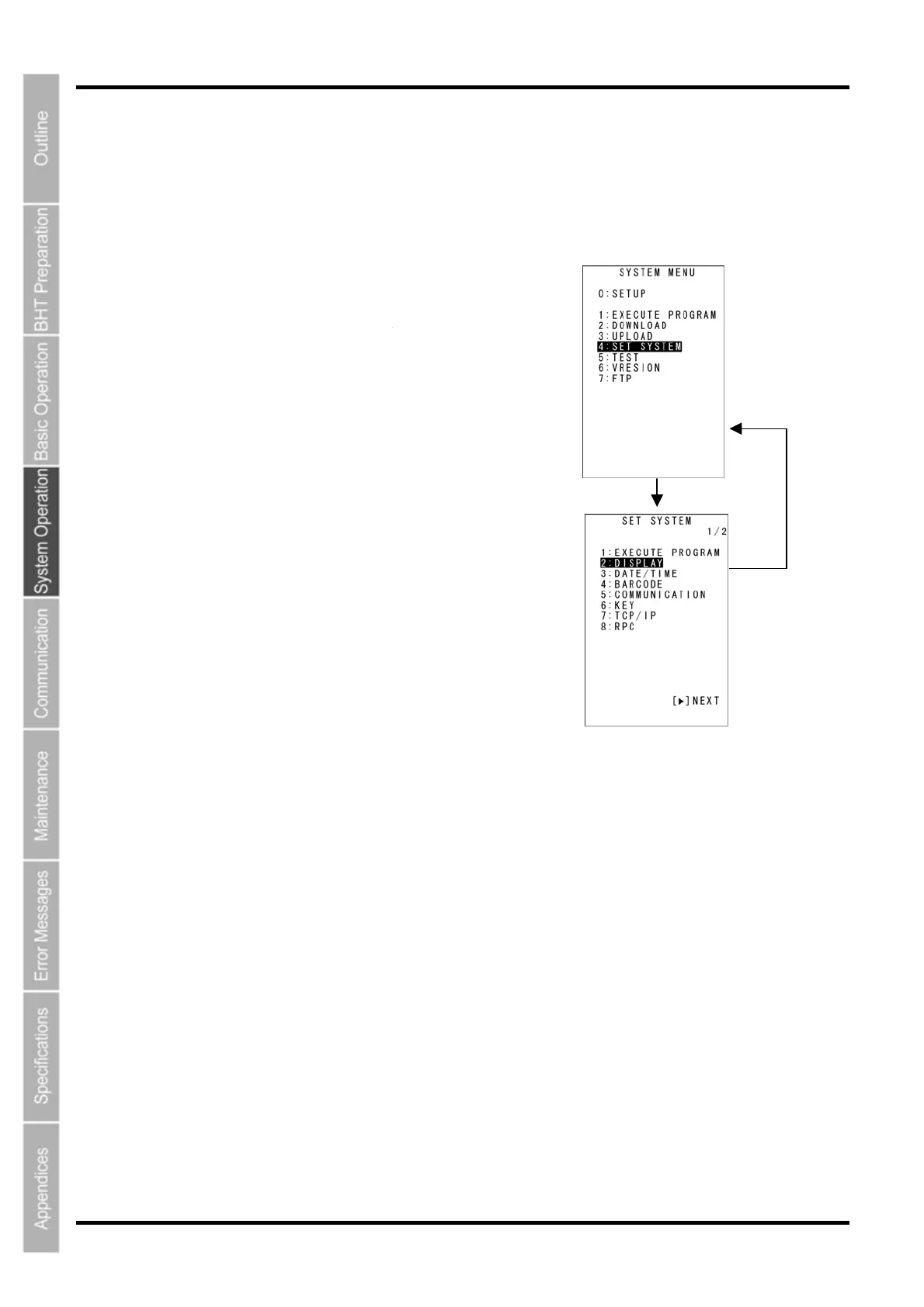 Select [4:SET SYSTEM] with