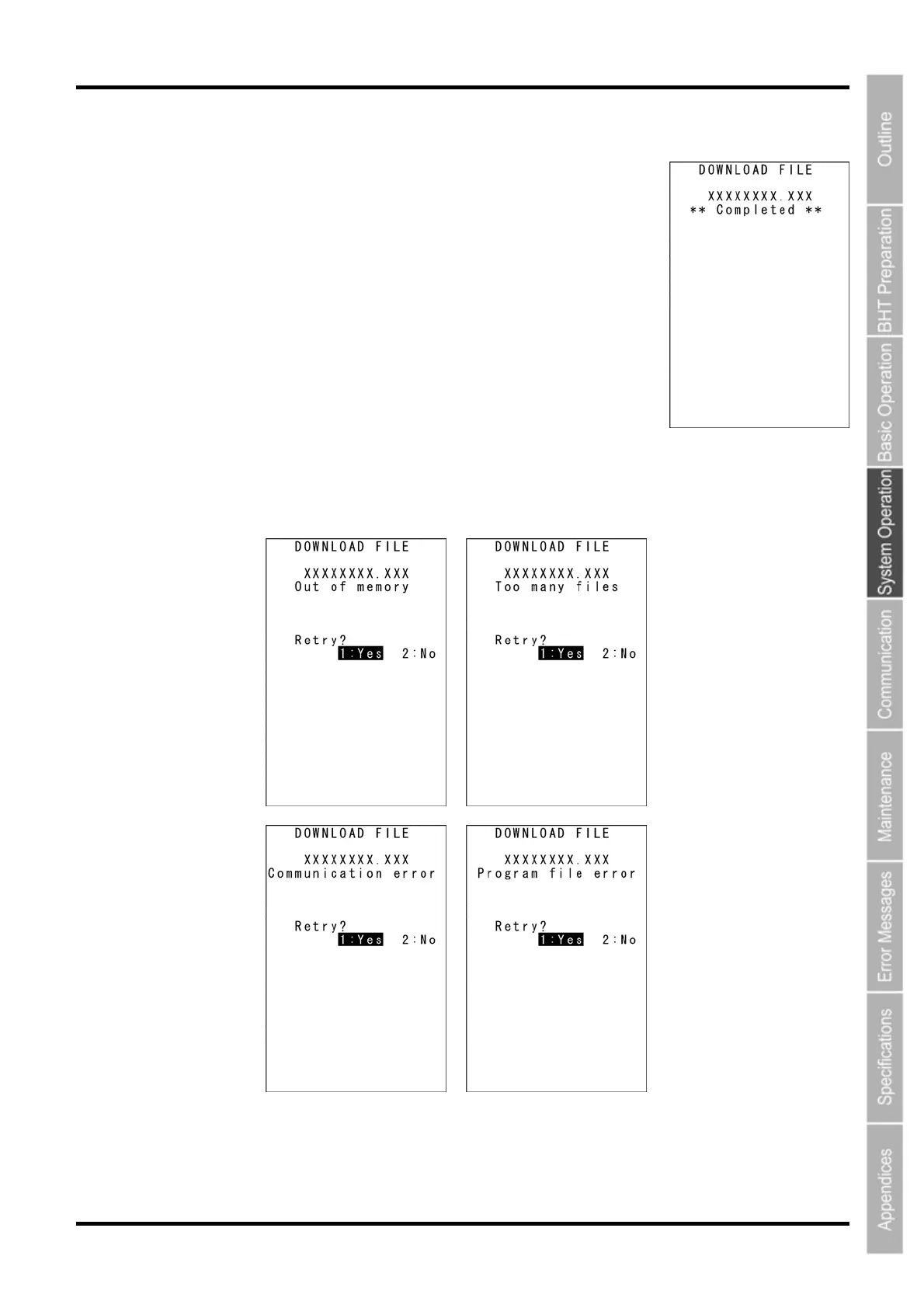 If an error message (screen below) displays during downloading, refer to “Chapter 7 Error Messages”.