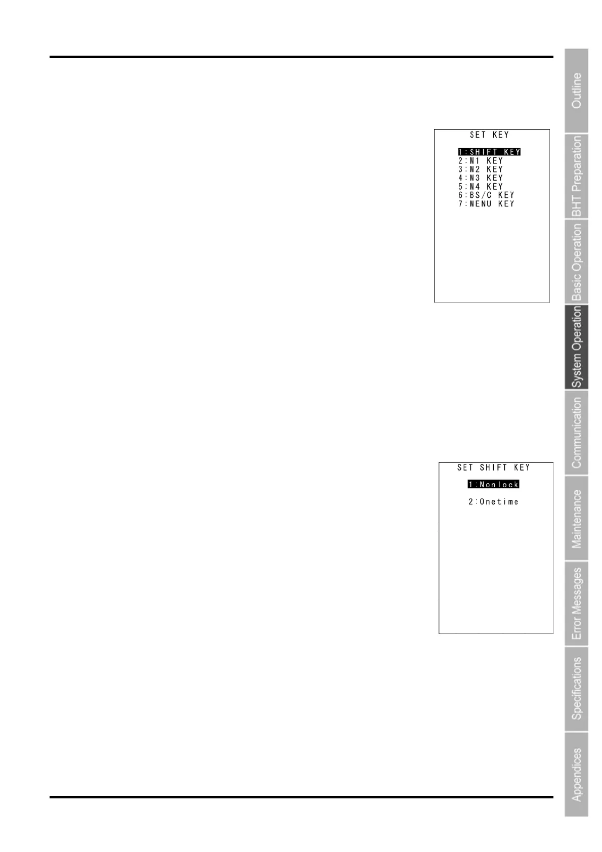 1. Select “1: SHIFT KEY” at the SET KEY menu and then press the