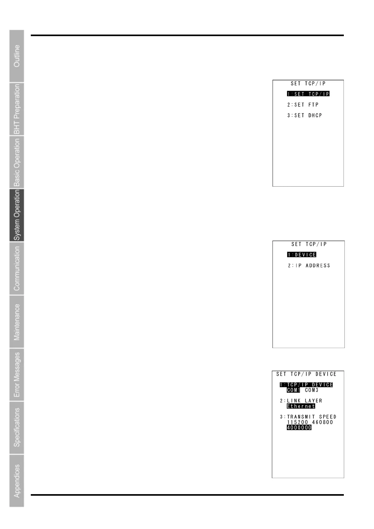1. Select “7: TCP/IP” at the SET SYSTEM menu and then press the