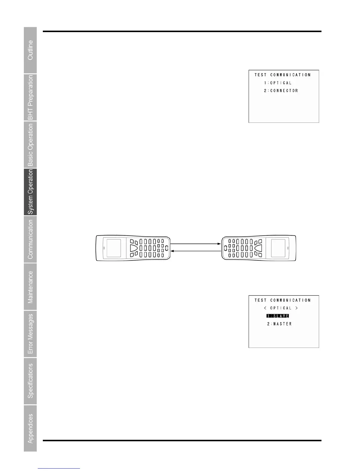 “1: OPTICAL”: Performs an infrared communication test.