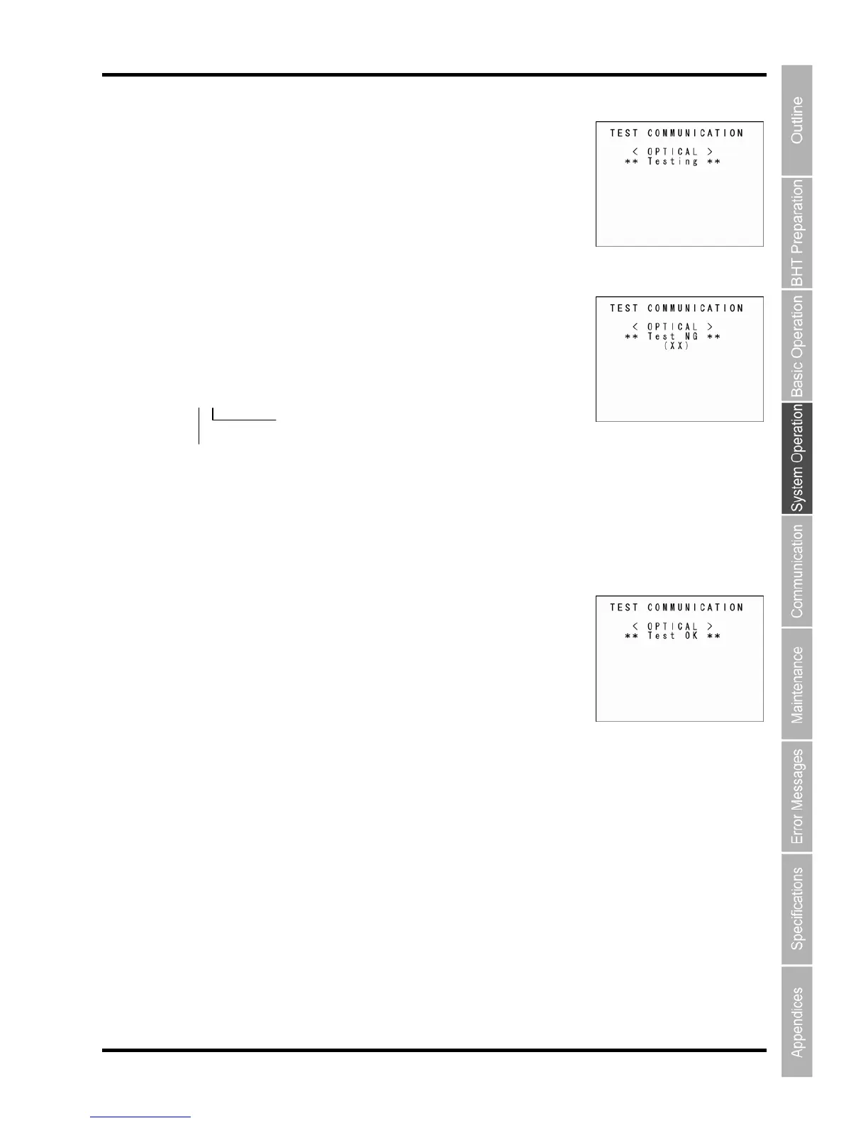the Backspace/clear key to return to the TEST COMMUNICATION menu.