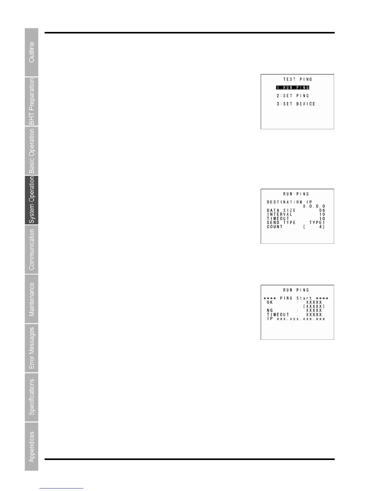 1. Select “1: RUN PING” at the TEST PING menu and then press the