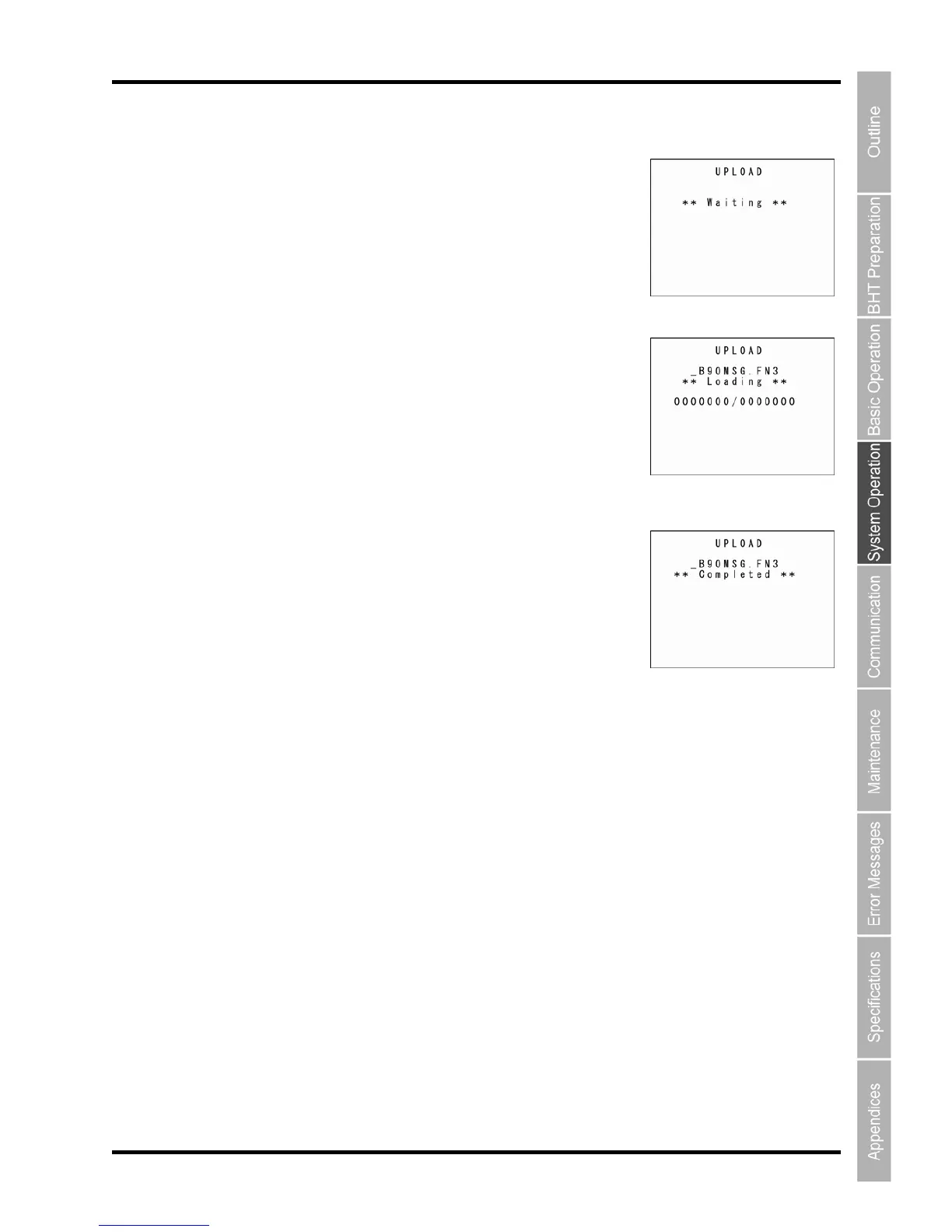 3. Upon completion of uploading, the BHT displays the screen