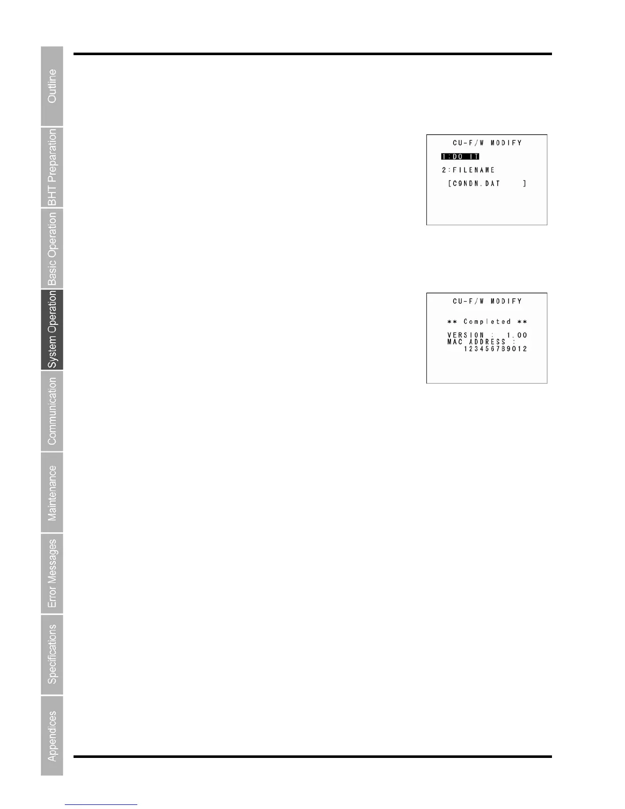 ress the Backspace/clear key to return to the CU-F/W MODIFY menu.
