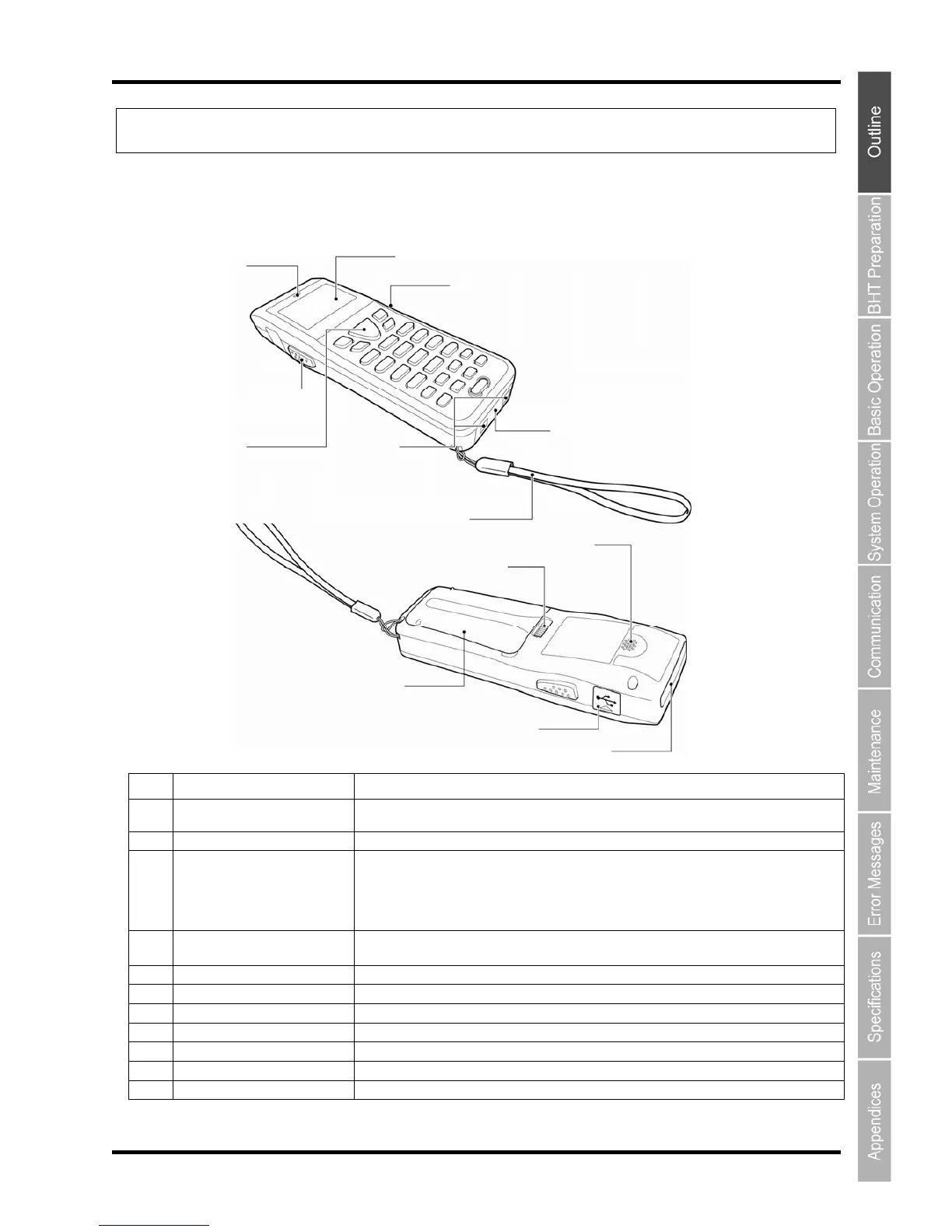(8) Hand strap Wear this strap around your wrist to prevent you from dropping the BHT accidentally.