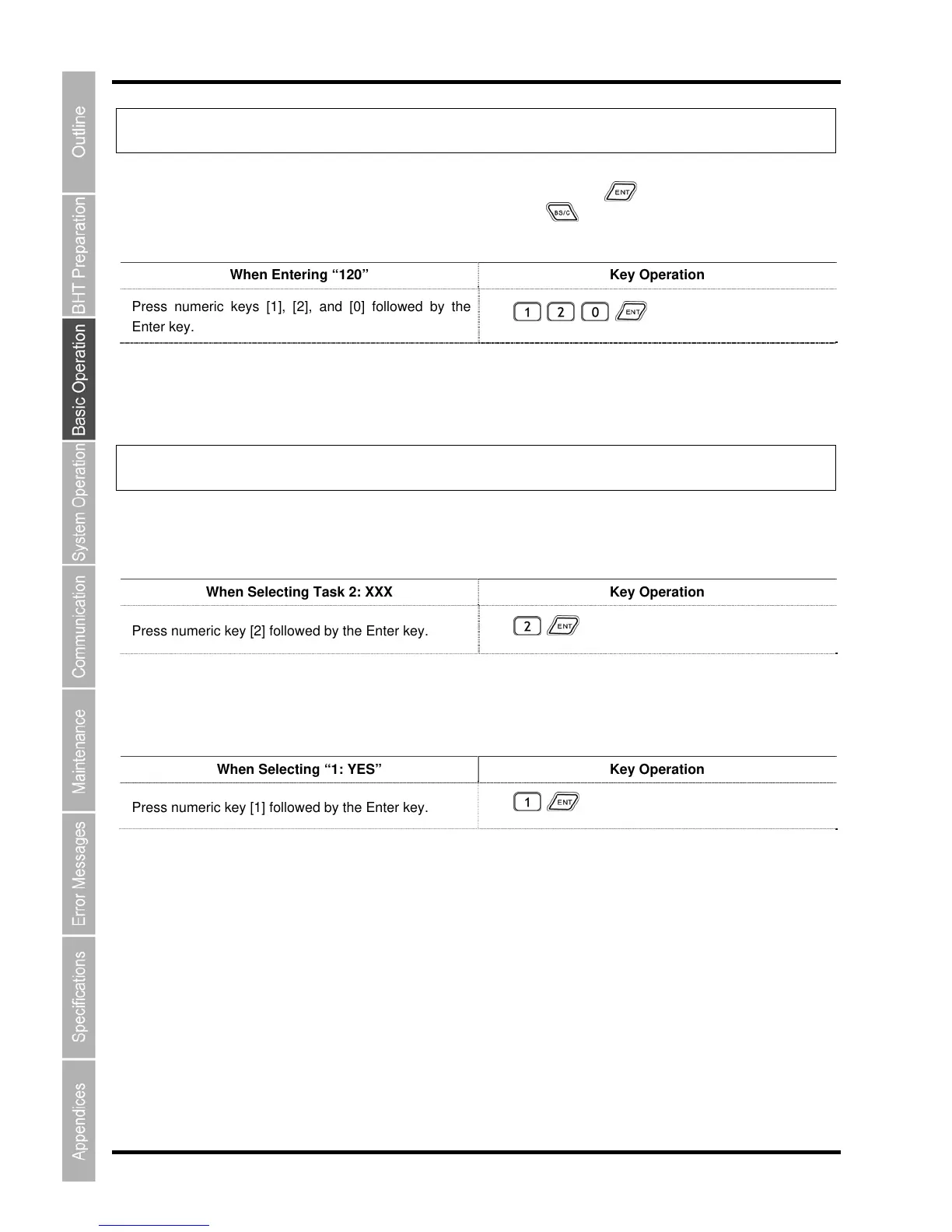 If a selection item "such as “1: XXX 2: XXX” with numeric values displays, enter the values with the numeric entry