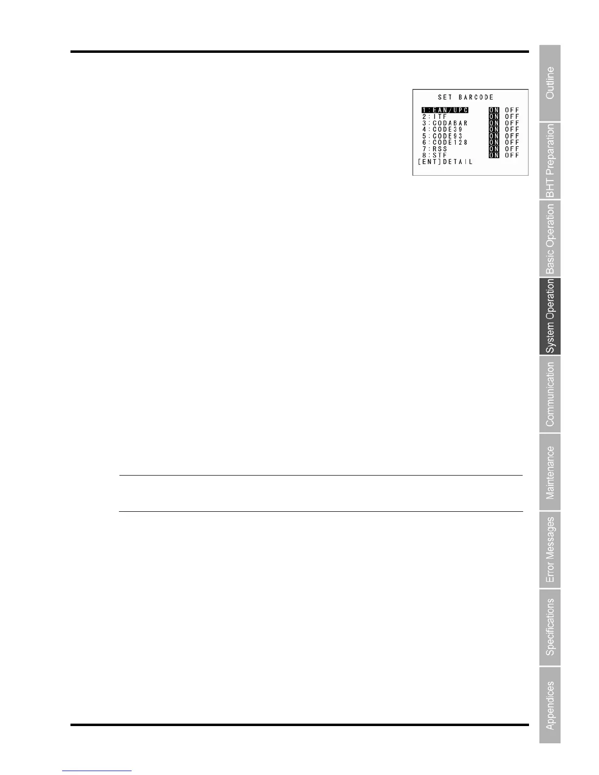 Point “1: EAN/UPC” and “7: RSS” include multiple barcode types. It is possible, via DETAIL (detail