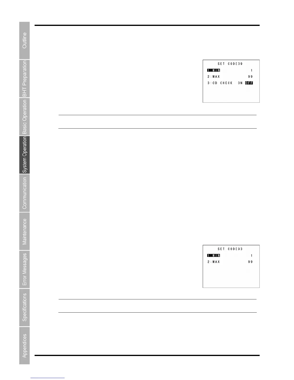 “4: CODE39”: Detail setting of the Code 39 reading