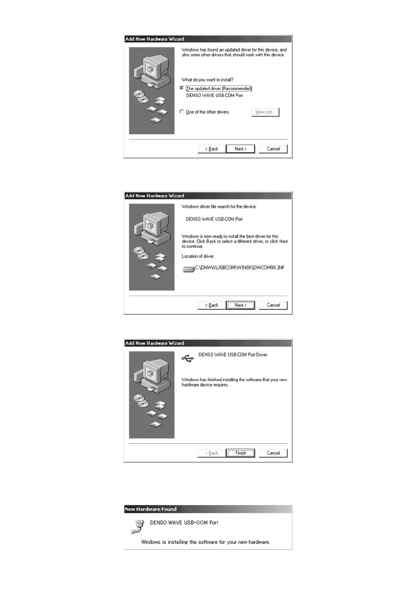 (6) If "DENSO WAVE USB-COM Port" is found as "The updated driver (Recommended)", then click Next.
