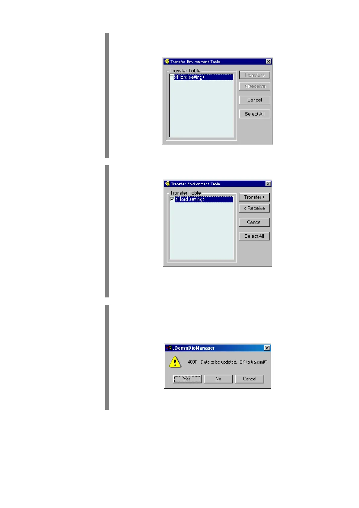 The Transfer Environment Table window appears.