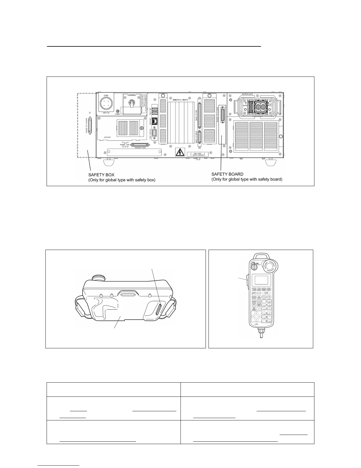 (1) Location of deadman switches (enable switches) on the teach pendant and mini-pendant