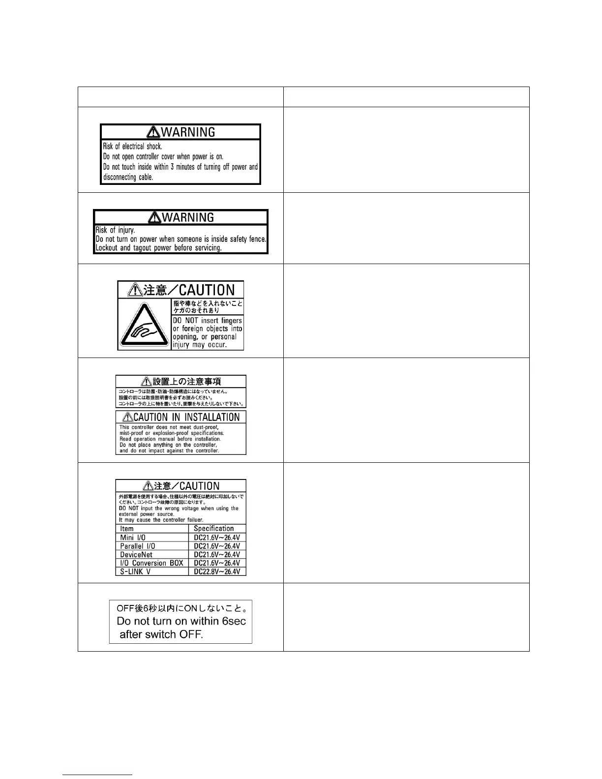 Warning and Caution Labels on the Robot Controller