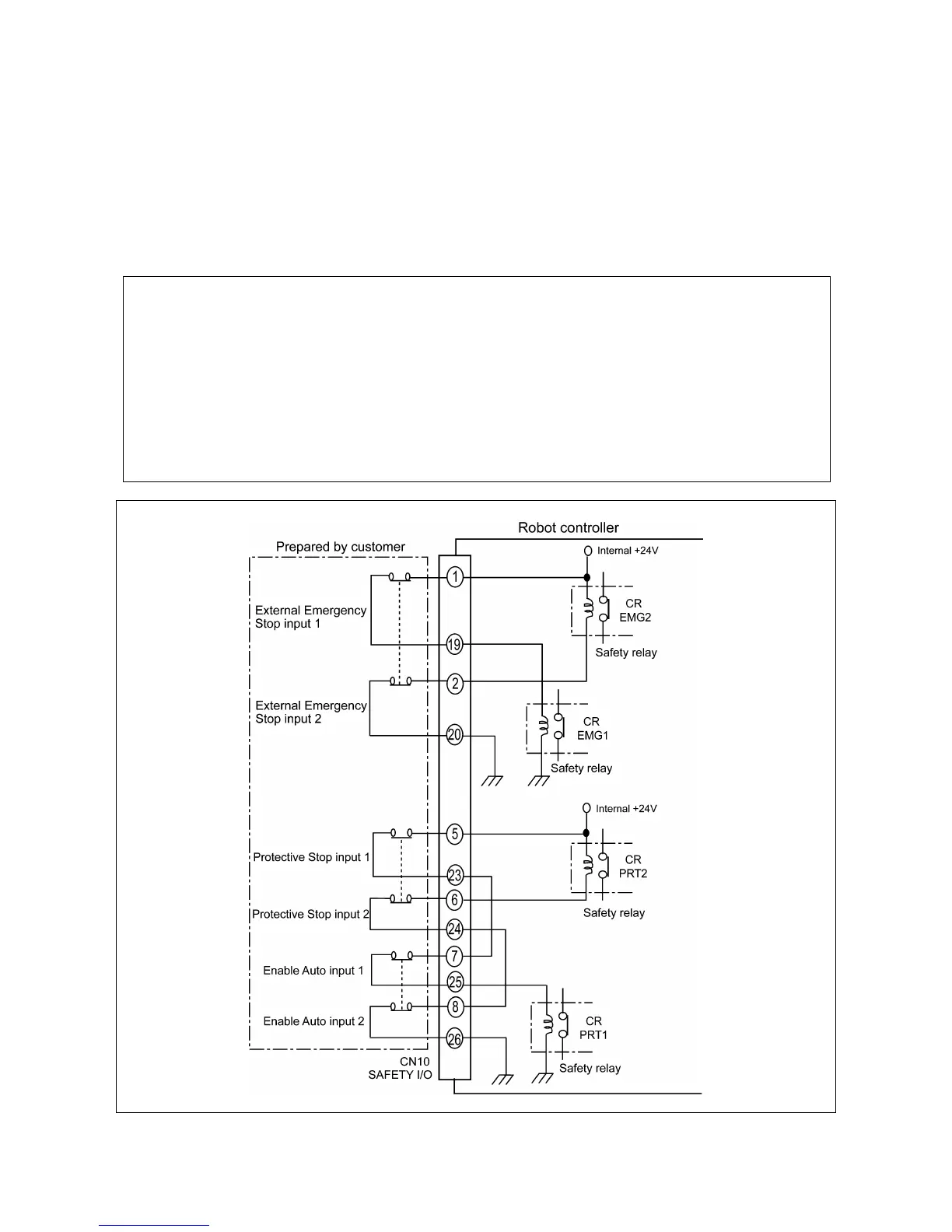 (1) Two External Emergency Stop input signals must be controlled with separate contacts. Two circuits